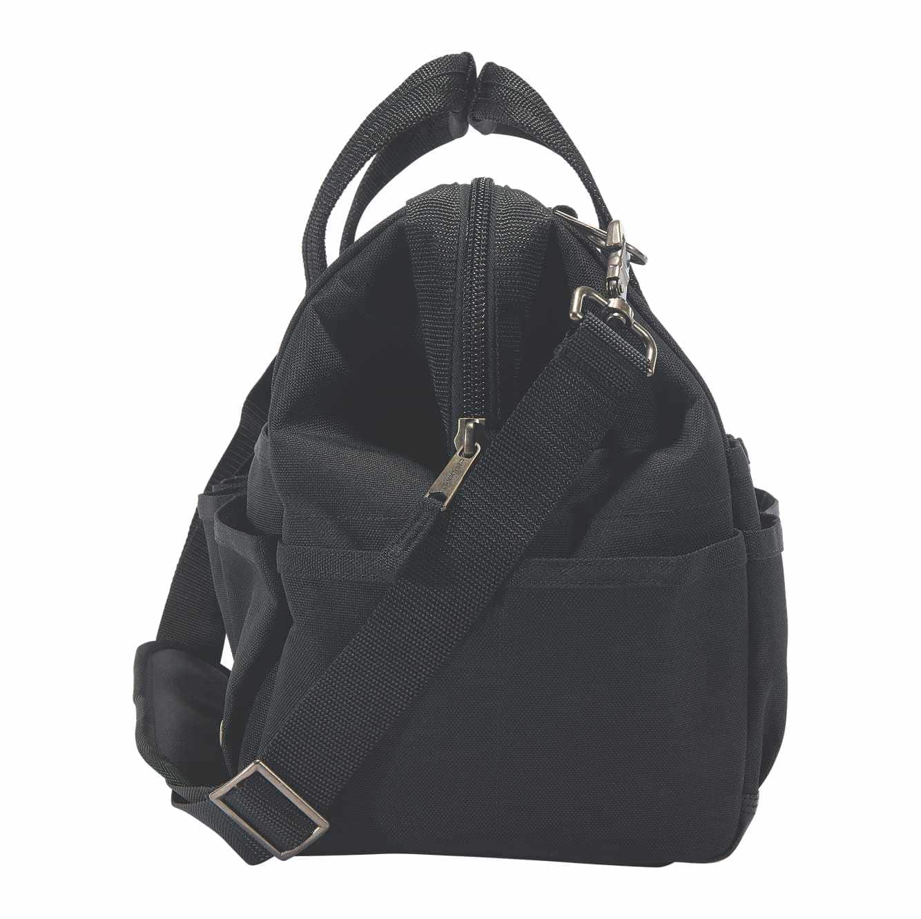 This tool bag makes it easy to find all your gear while you're out in the field. At 16 inches, the main zip compartment is large enough to fit a cordless drill, plus there are 30 total pockets for your hand tools. Built to last, the bag is made of heavy-duty material that stands up to light rain. It has an inner metal frame for some structure and an abrasion-resistant base.
