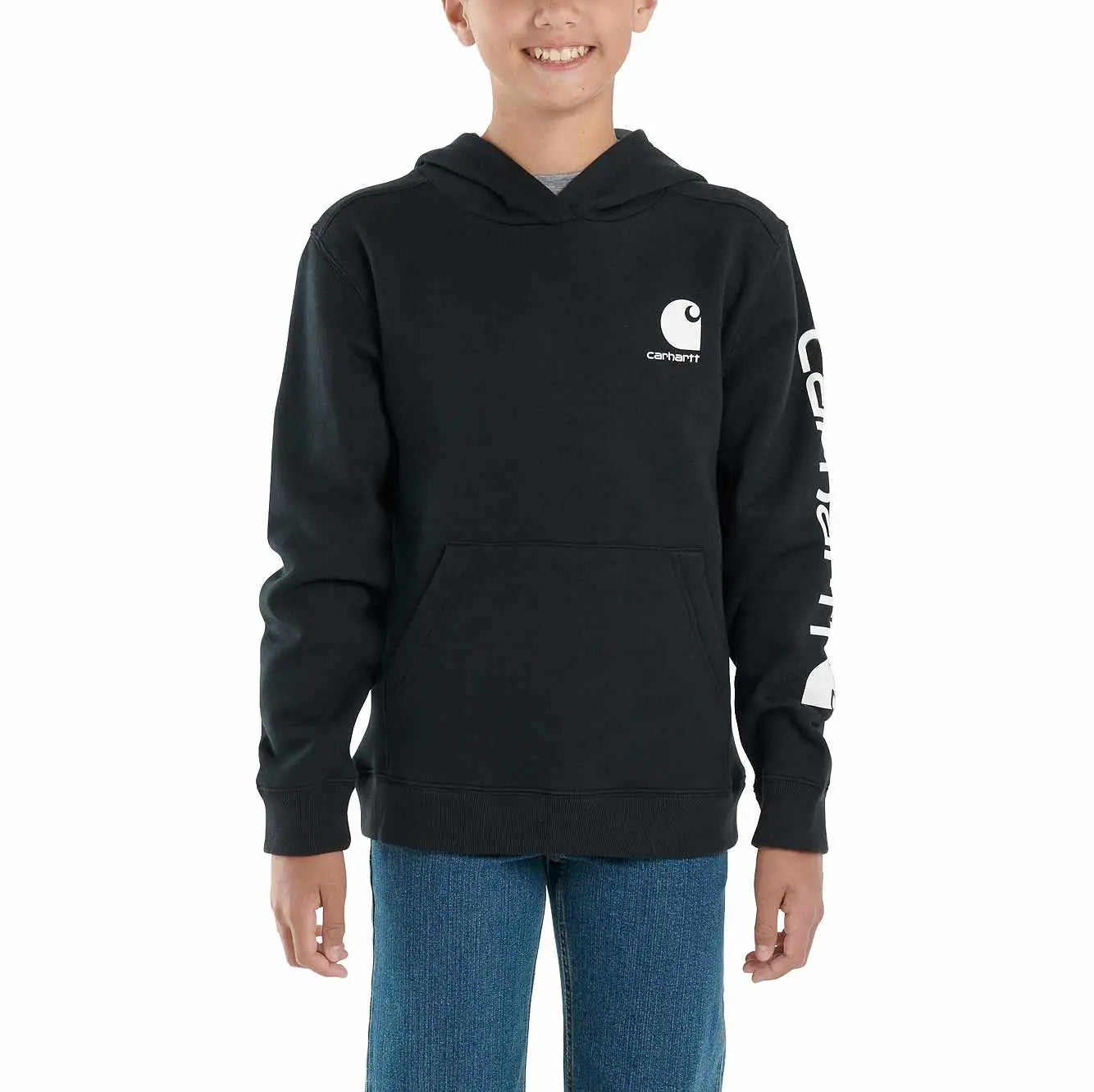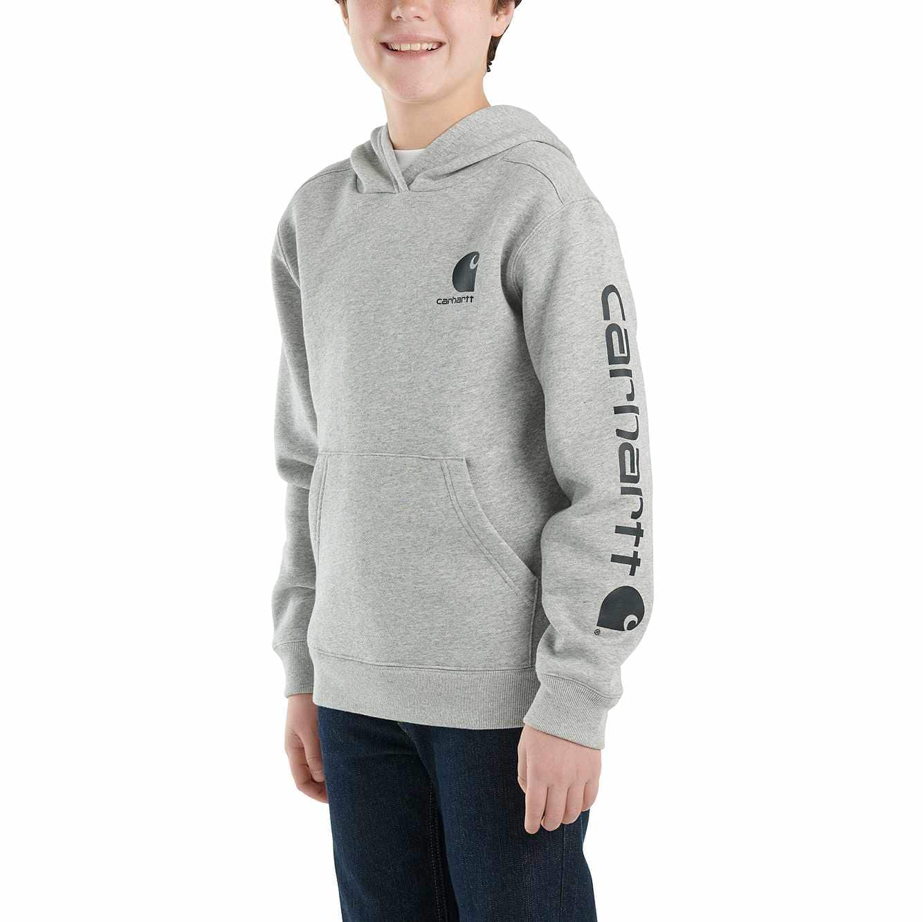 As strong as it is soft, this boys' hoodie has serious comfort. No unnecessary details. Just warm fleece and a simple, durable Carhartt design. We could keep talking, but why?