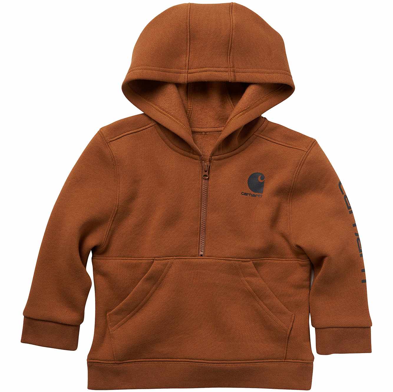 Keep your active kiddo warm all season long. This baby boys' fleece hoodie is the next best thing to wearing a blanket. Because it's Carhartt, you know it's going to be as durable as it is comfortable. A half zip makes it easy to get him into and out of it in a flash.