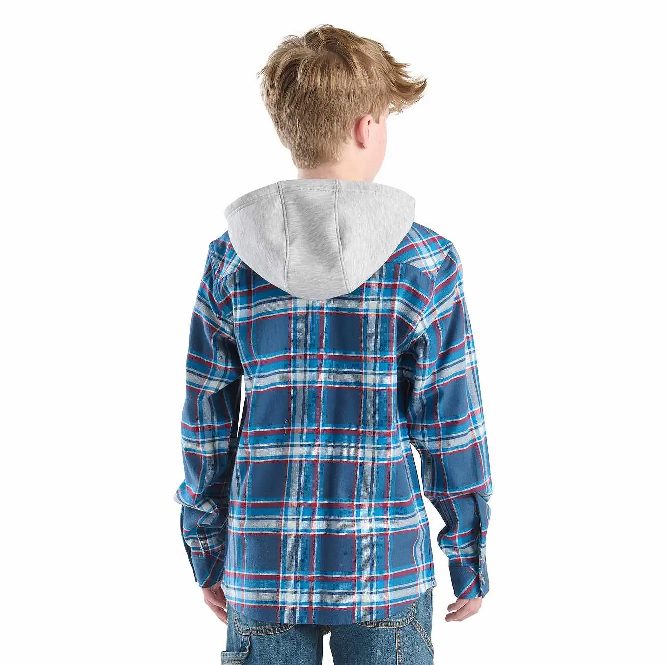 The only thing better than a boys' Carhartt flannel shirt is one with a hood. Soft cotton is durable enough to stand up to everything he gets into. Let him get it dirty. It's ready to be washed and worn over and over.