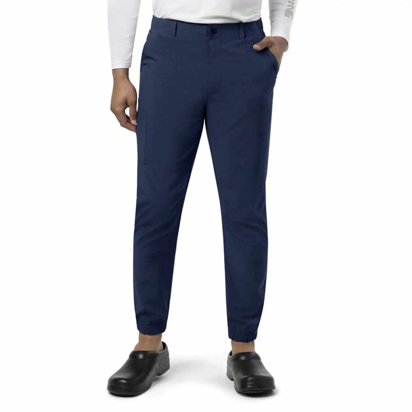 Stay comfortable on shift with our men's jogger scrub pant. The stain-resistant polyester blend wicks sweat and maintains a presentable look for long shifts, while a variety of pockets keep your pen or scissors within easy reach