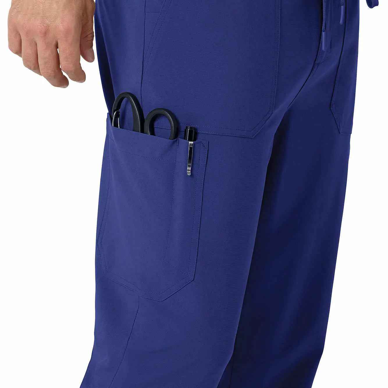 You deserve comfort during every shift because it's what helps you do your best work. Blend the best of off-duty style with on-the-clock utility in these men's jogger scrub pants. They fit like comfortable joggers with a sport-inspired silhouette but include plenty of purposeful pockets — your best assistant as you move from task to task and room to room. Two deep front slash pockets offer storage on the go, while two back pockets zip shut to keep smaller items in place. Cargo pockets take care of the rest. One on the right is built with utility loops to secure items like your glasses or badge. Another on the left is designed with an interior mesh pocket that keeps your phone handy but out of sight and out of the way. Ribbed cuffs taper the profile and let your feet move freely without anything in the way. Adjust the drawstring on the elastic waist for a just-right fit.