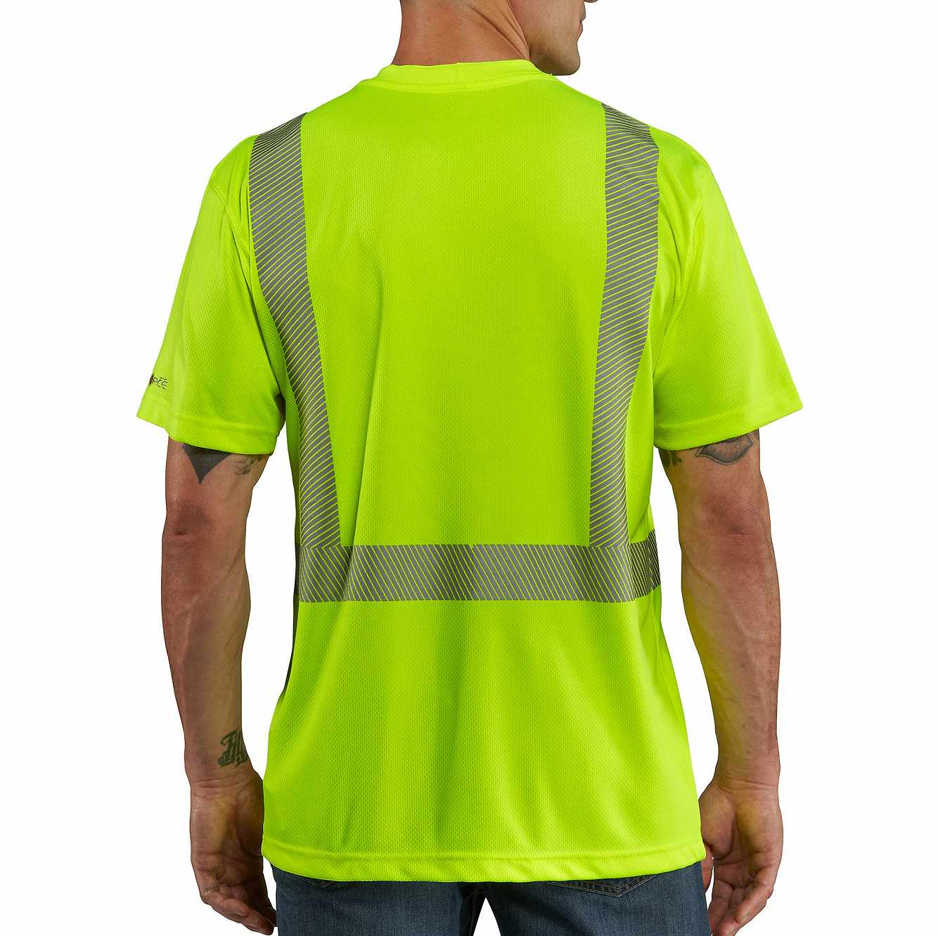 Be seen on the job in this men's short-sleeve t-shirt. The shirt is made of reflective material with reflective trim and is ANSI Class 2, Level 2 compliant. The lightweight fabric also wicks sweat, repels stains, and fights odor.