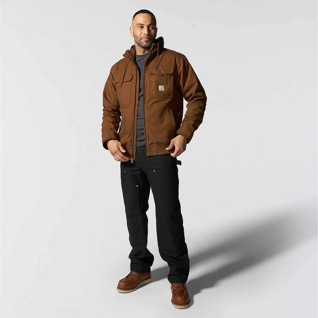 Insulated for warmth and broken in for easy movement, this men's Carhartt duck active jac is made for long work days in cold, windy weather. The 12-ounce canvas with reinforced cuffs delivers hard-wearing durability. Generous insulation throughout seals in warmth. A loose fit allows for easy layering and movement.