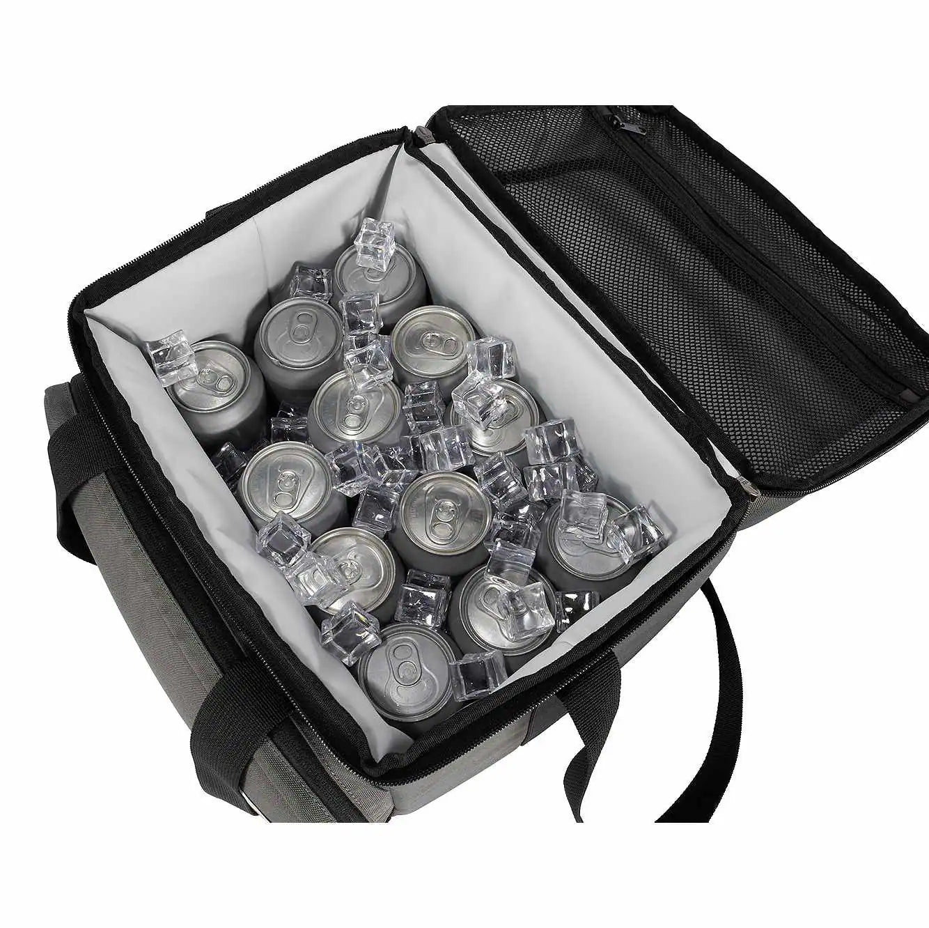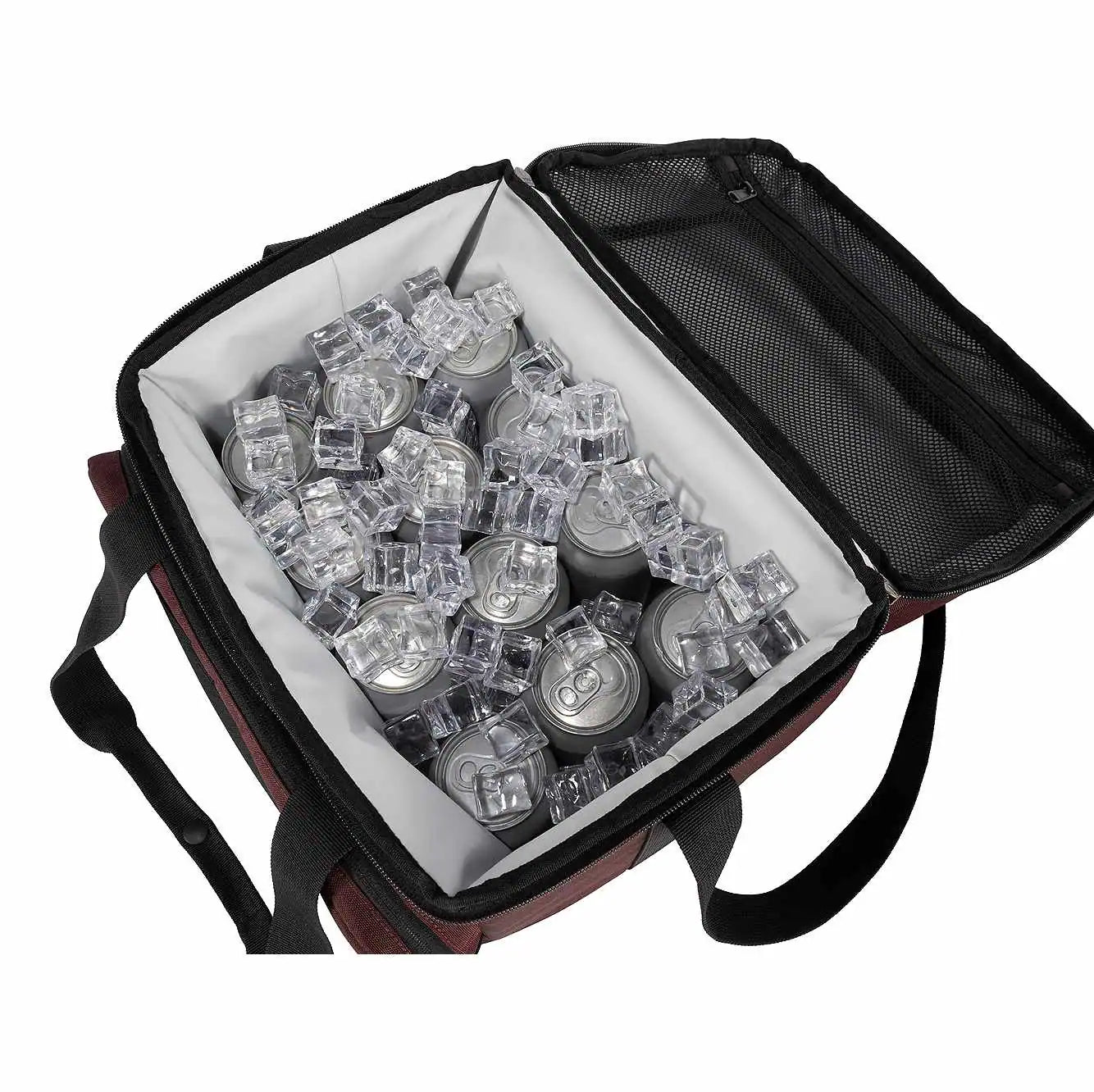 - Two compartments to separate dry items from iced items