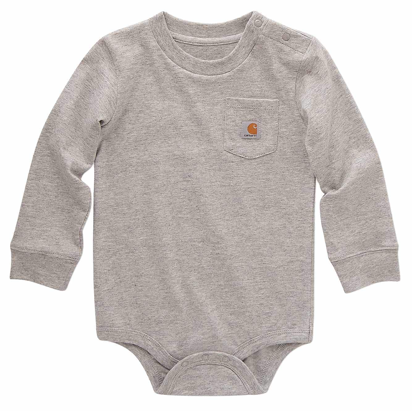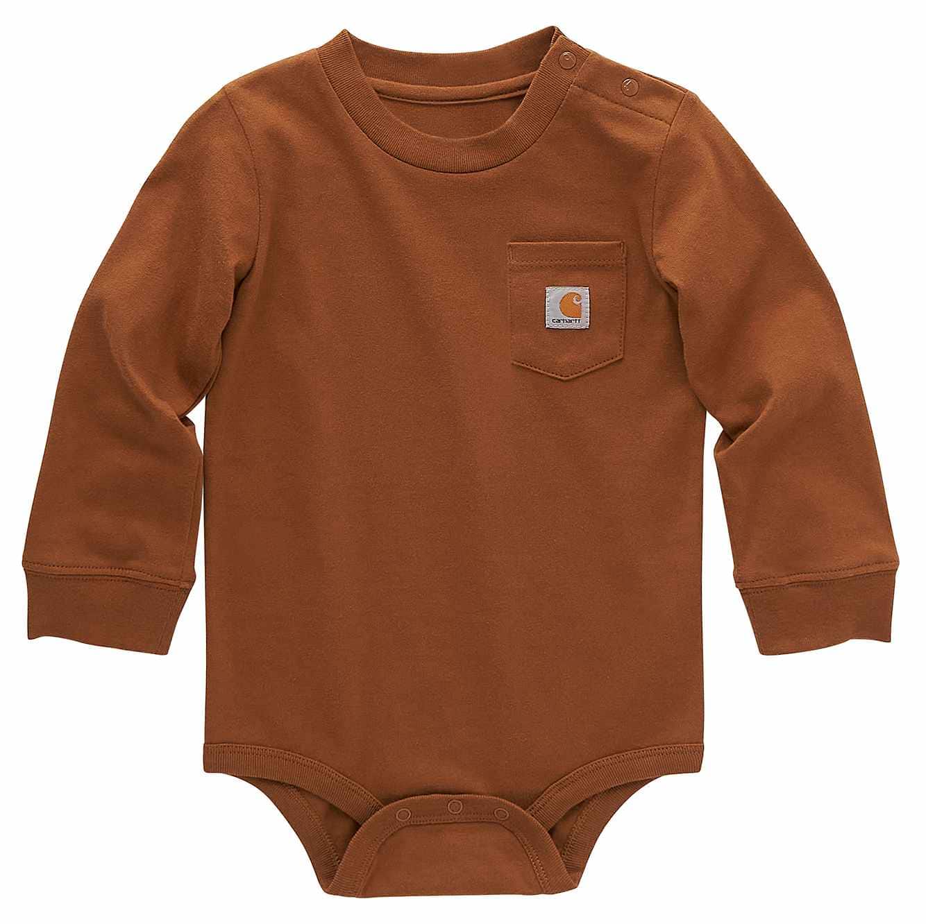 Carhartt is uncomplicated. This kids' bodysuit proves that motto. The patch pocket with a stitched-on logo is all it really needs to get the point across. Soft cotton feels comfortable. And snaps make quick changes fast and easy. End of story.