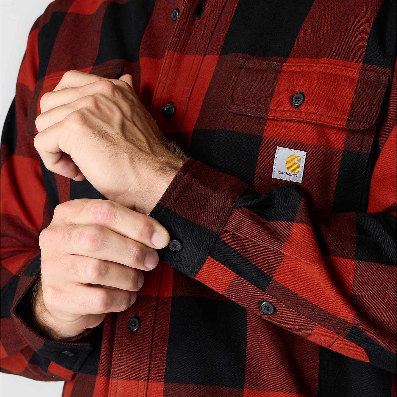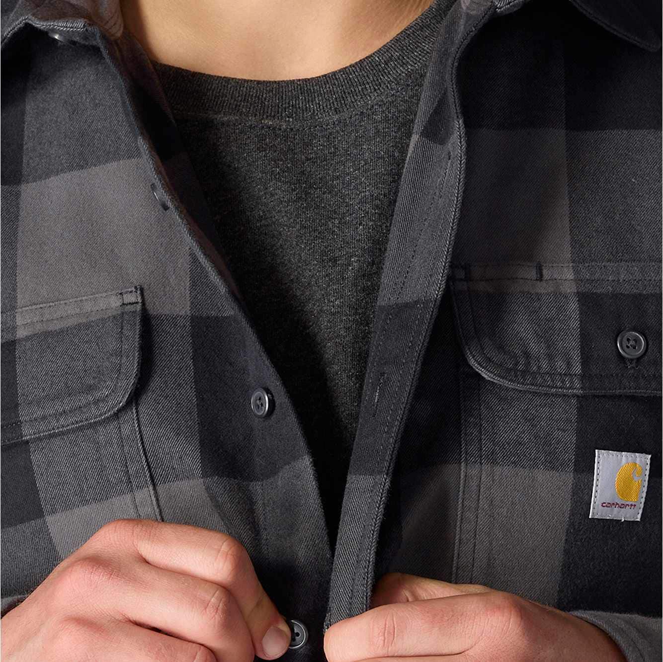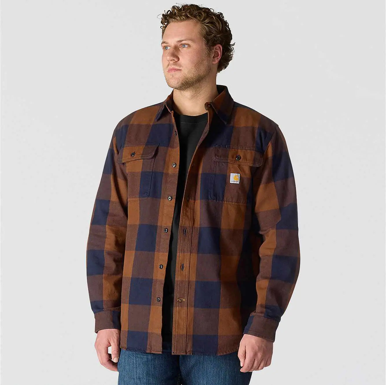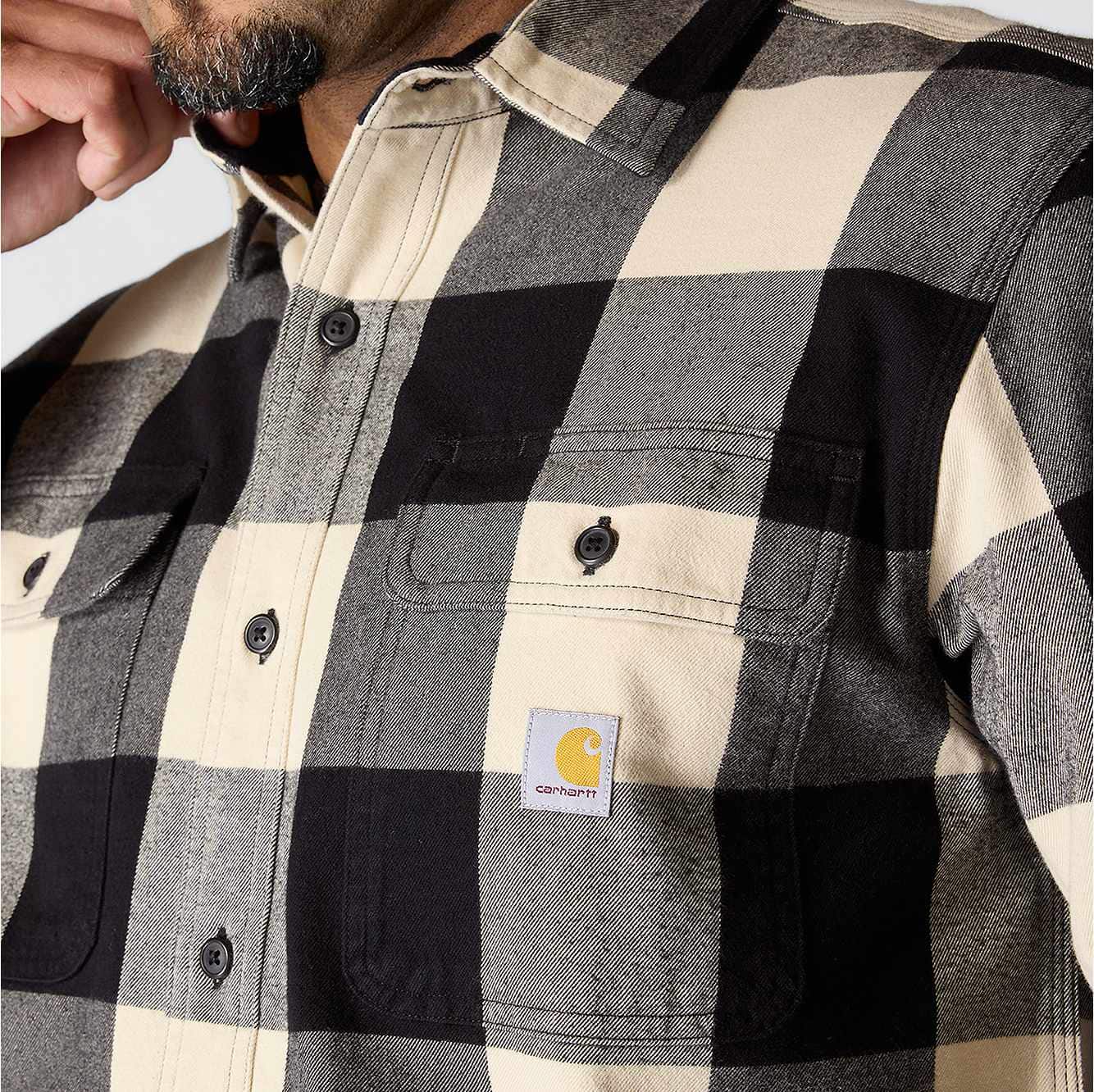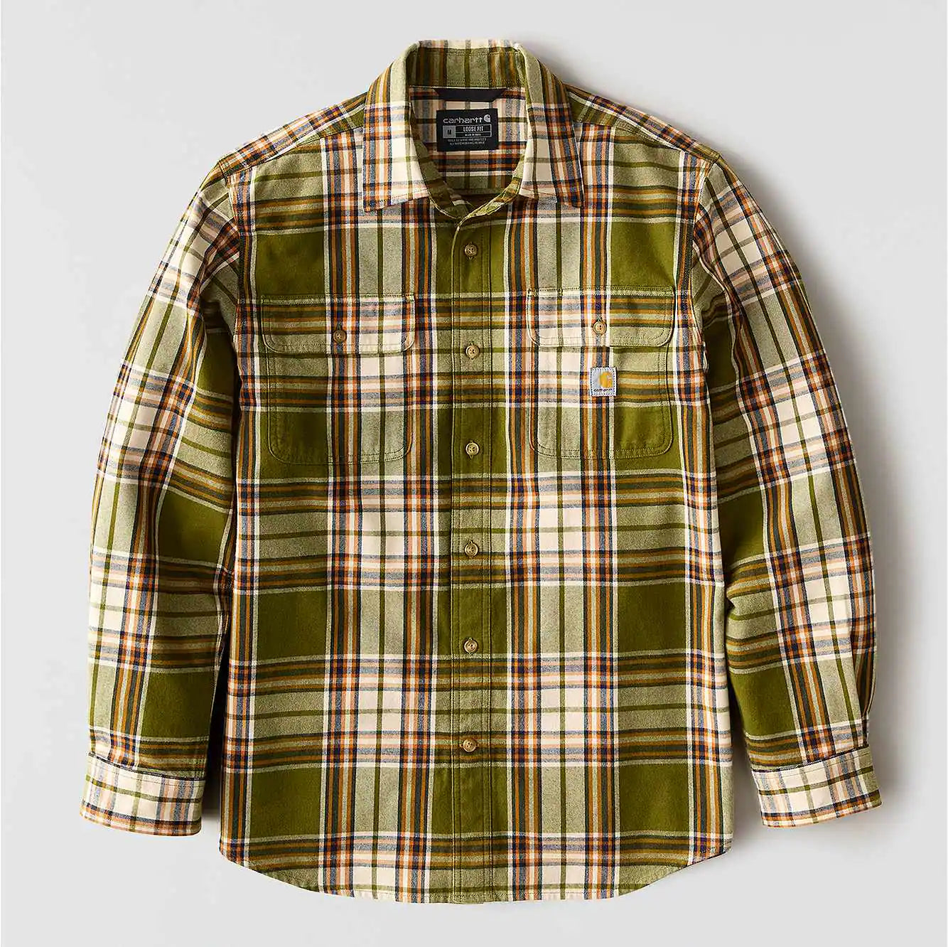 Built for cooler weather and rugged days, this men's Carhartt flannel shirt features a heavyweight cotton flannel with a brushed finish for a soft feel. A loose fit allows for easy layering and plenty of room to move.