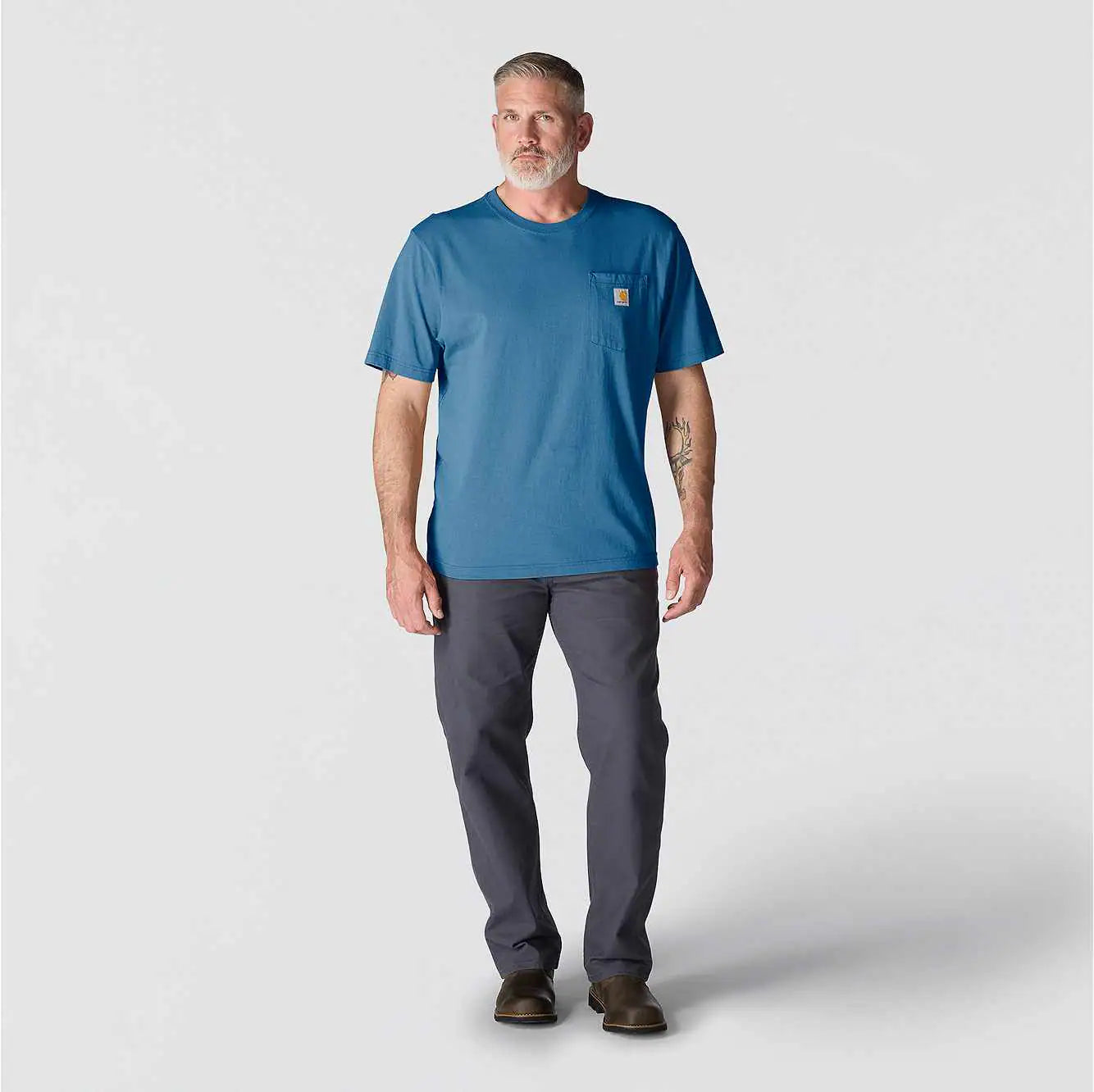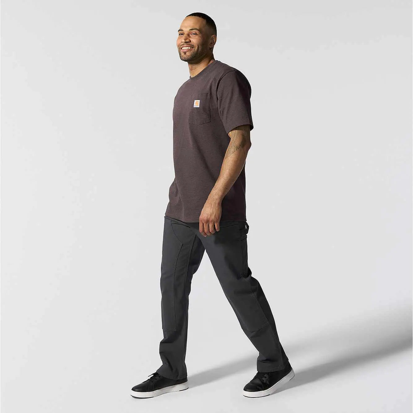 Our pocket t-shirt debuted in 1992, and its rugged cotton design and clean looks made it a fast favorite among the hard-working folks who pulled it on. Though decades and trends have come and gone, there's a reason the K87 remains a classic. This men's t-shirt is made with heavyweight cotton built to handle tough days on the job. It has an loose fit that gives you room to move and a soft feel that only gets better with time.