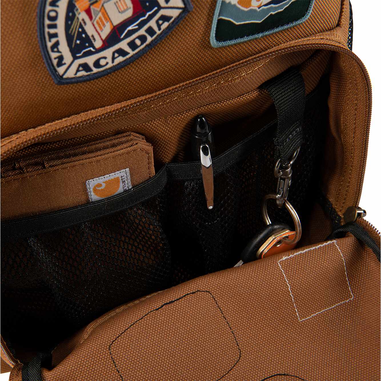 - Front zippered organizer pocket