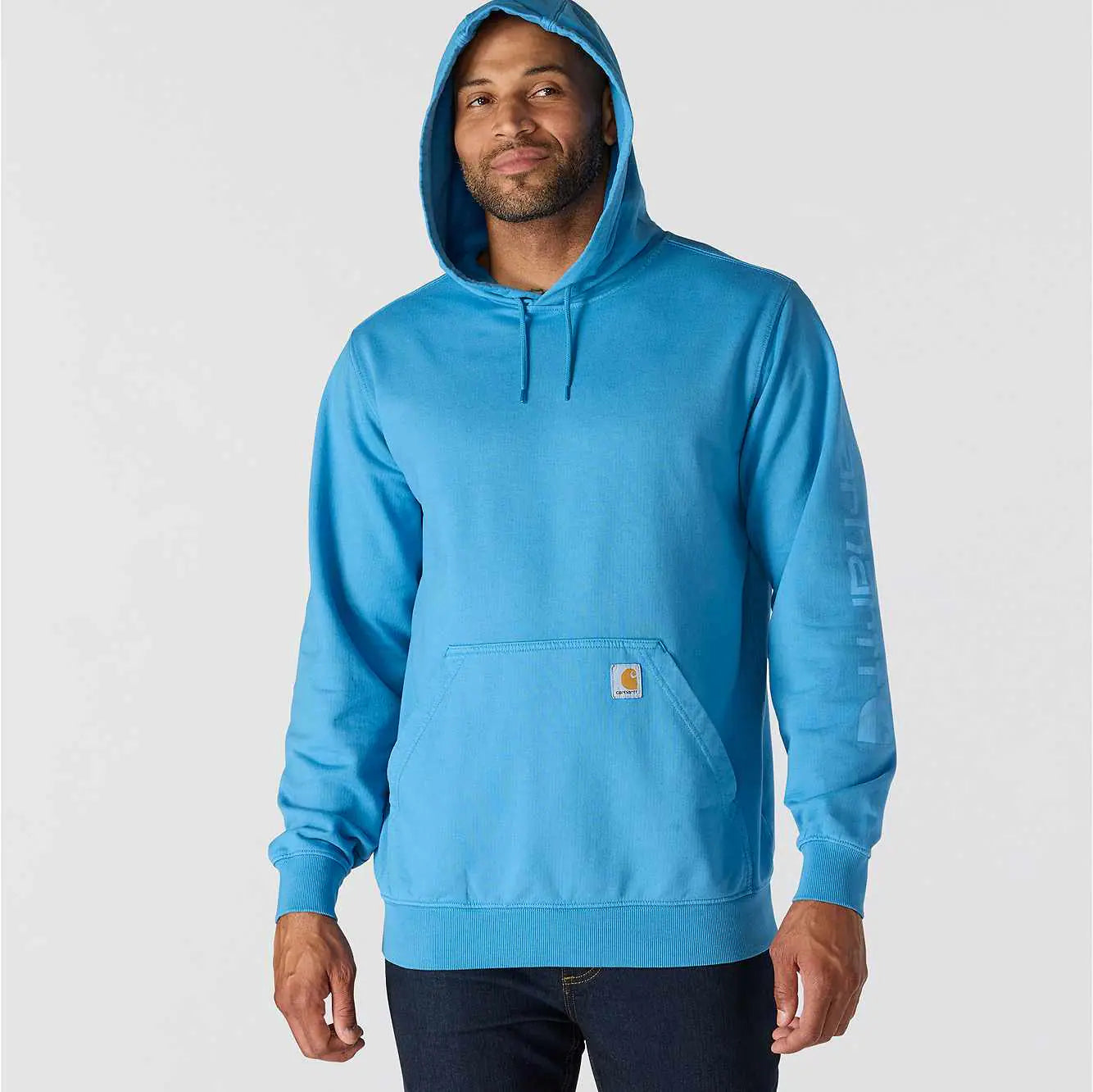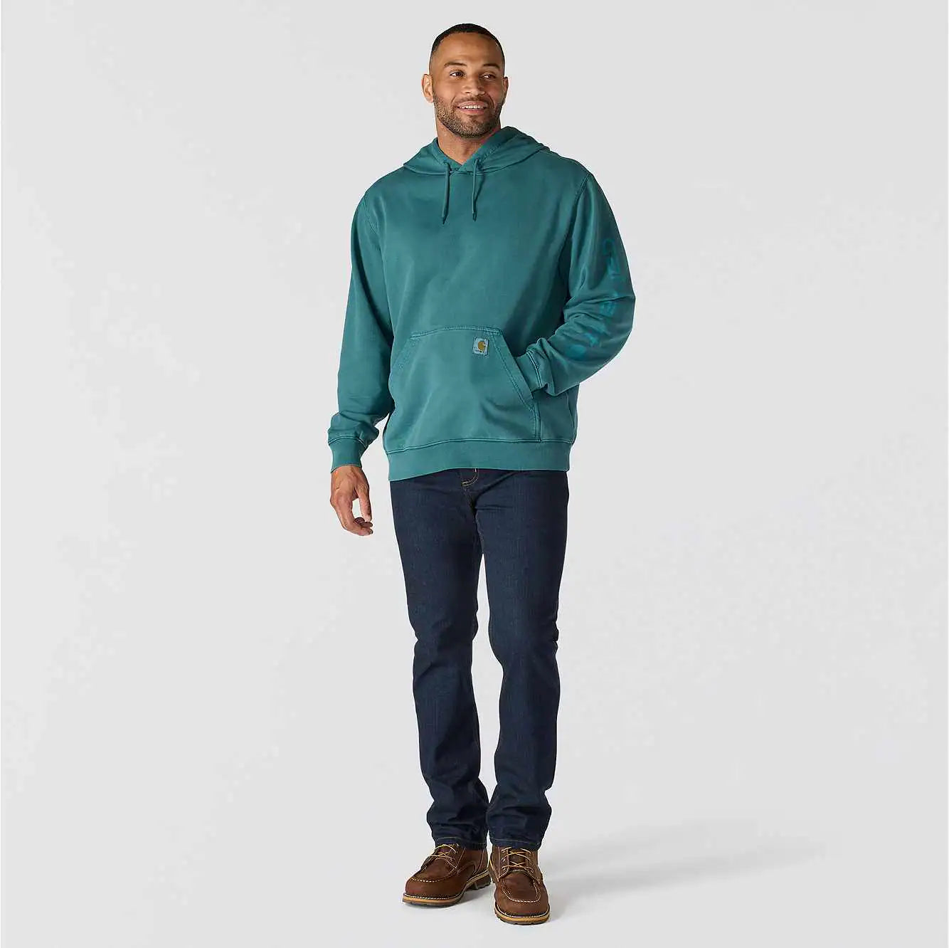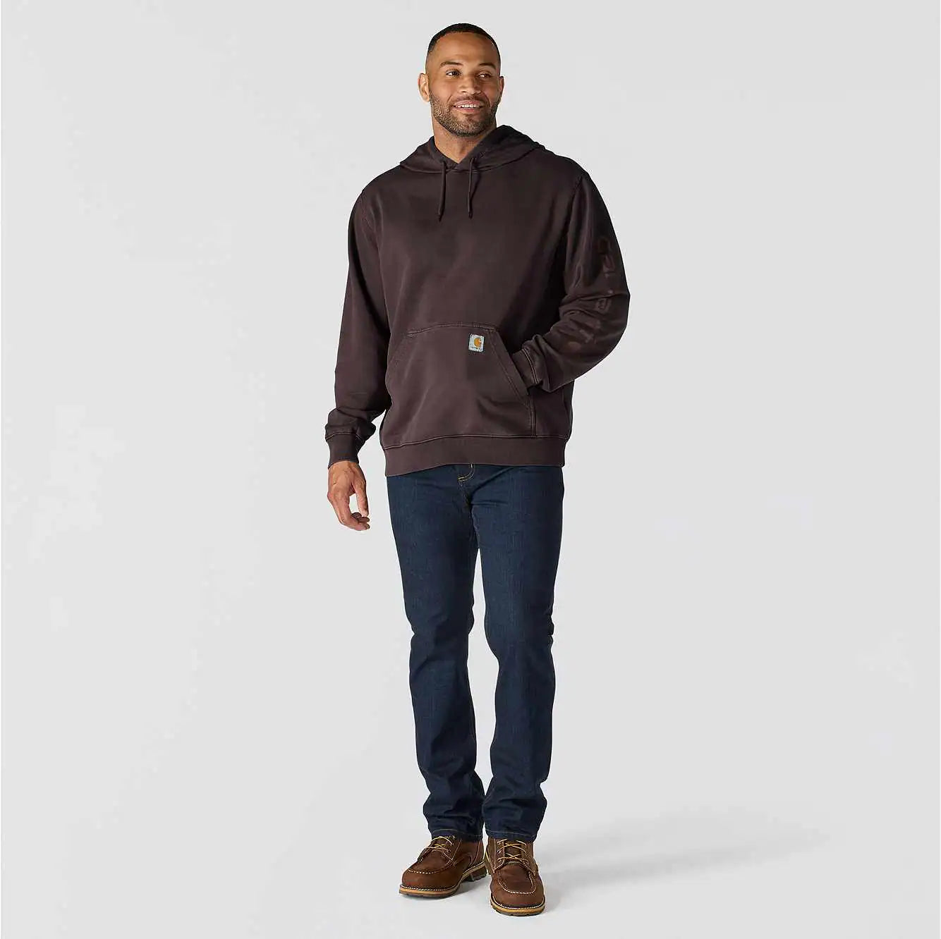 Hanging with family or hauling building materials, the familiar warmth of this men's Carhartt hoodie offers anytime versatility that you can dress up or down depending on the day. The midweight cotton-blend design is super soft and has a relaxed cut gives you extra room at the waist and an easy fit through the sleeves.