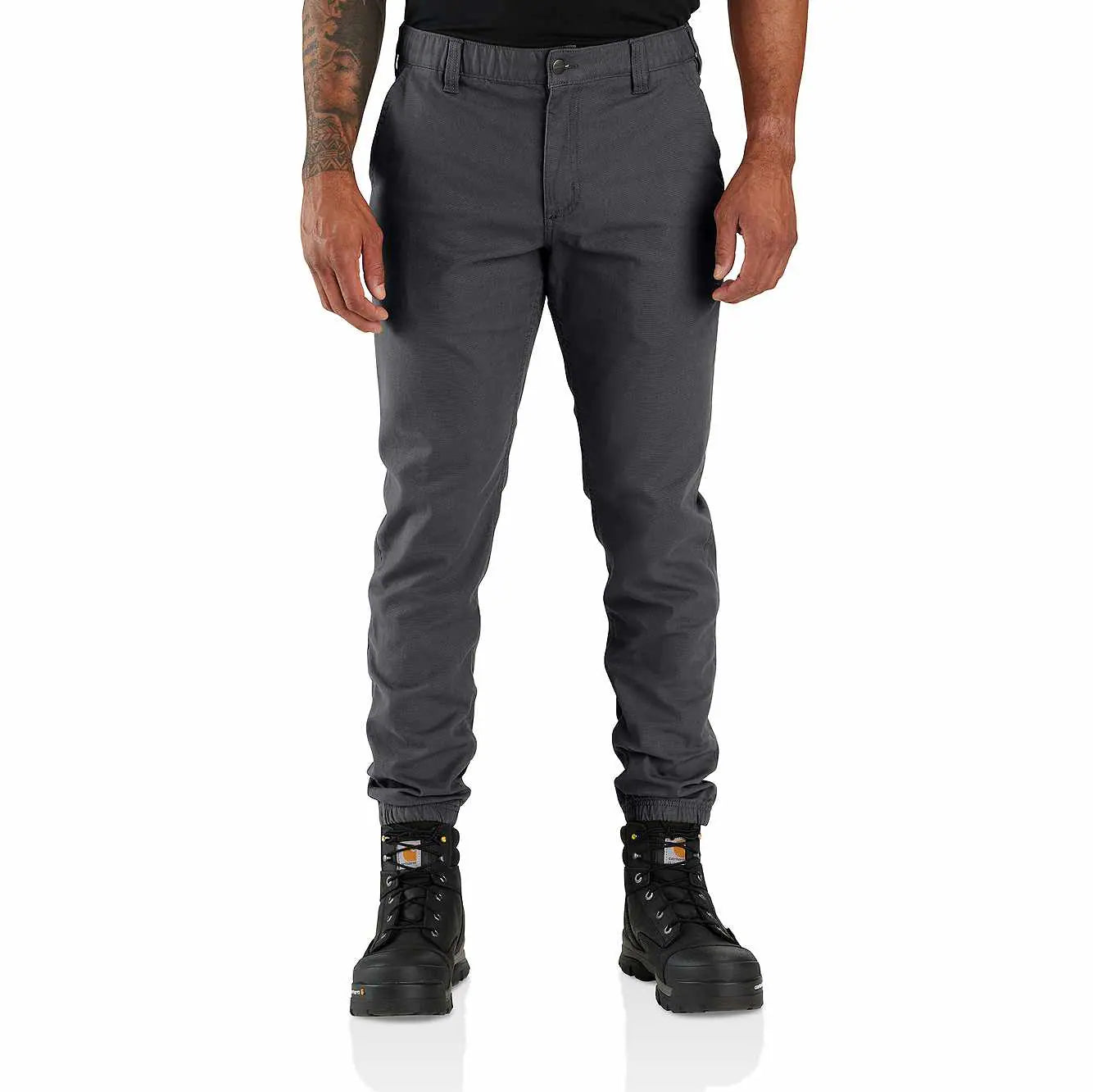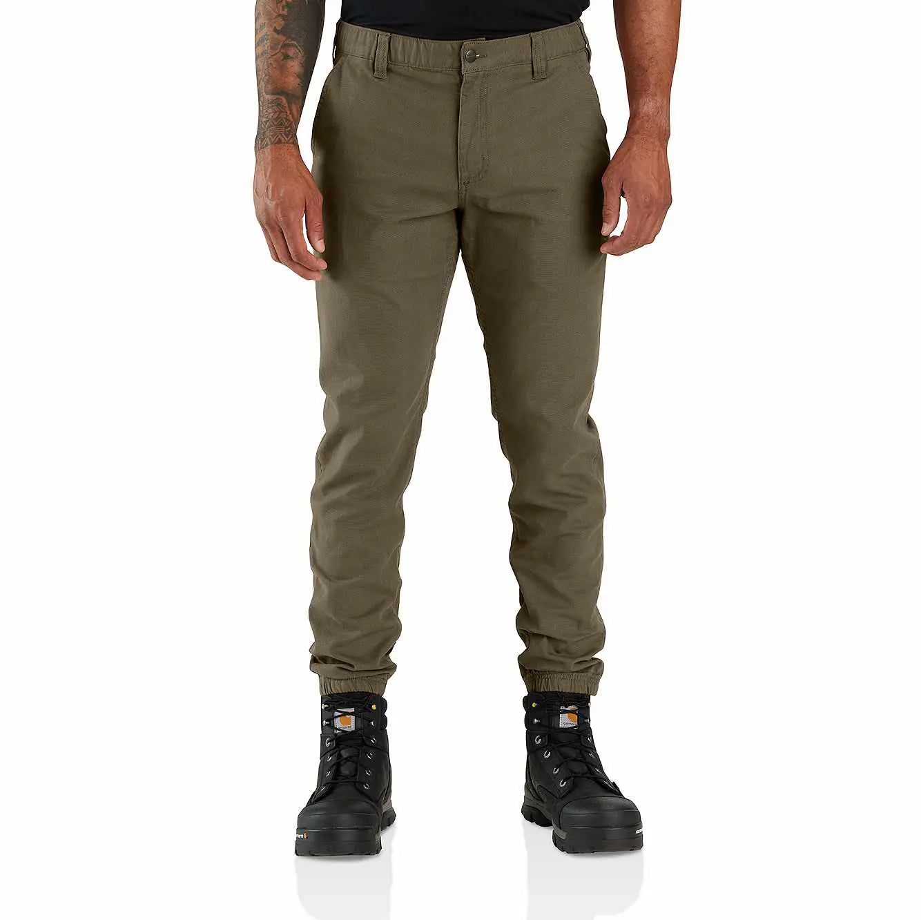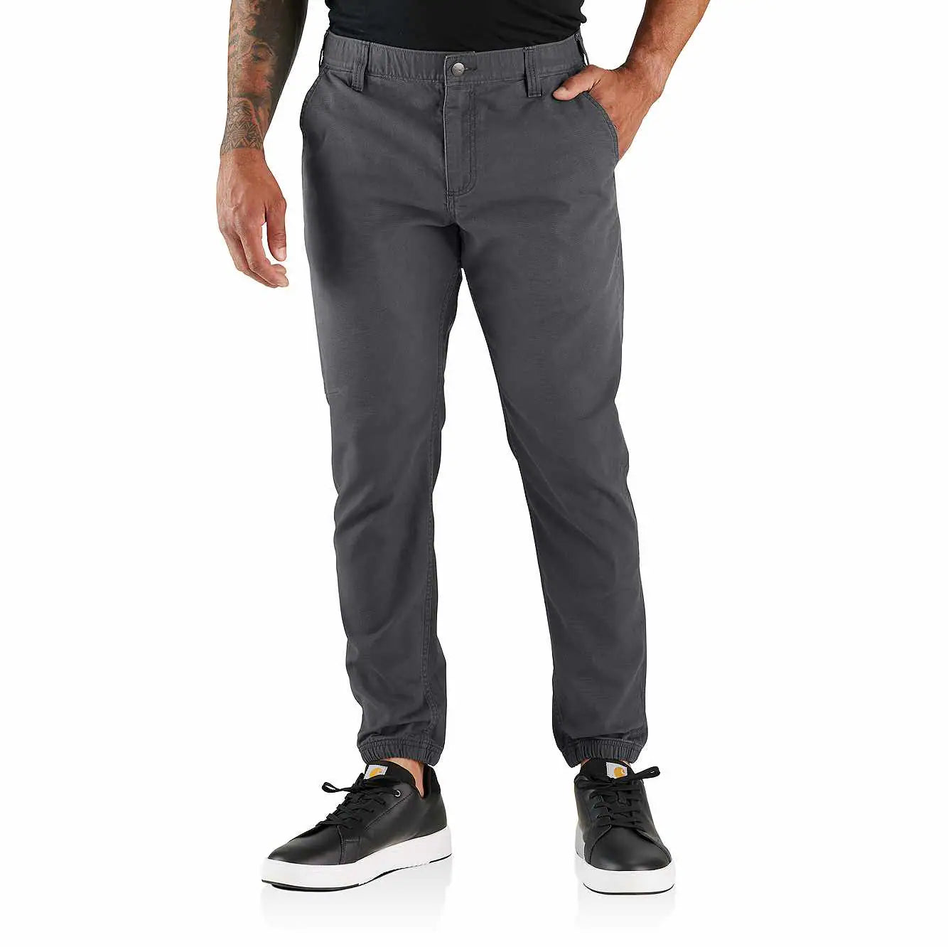 Rugged yet flexible, these men's jogger pants are made from durable canvas that's built to move. Cut for a relaxed fit, with a tapered leg and elastic cuffs. Featuring front pockets plus a utility pocket on the leg.
