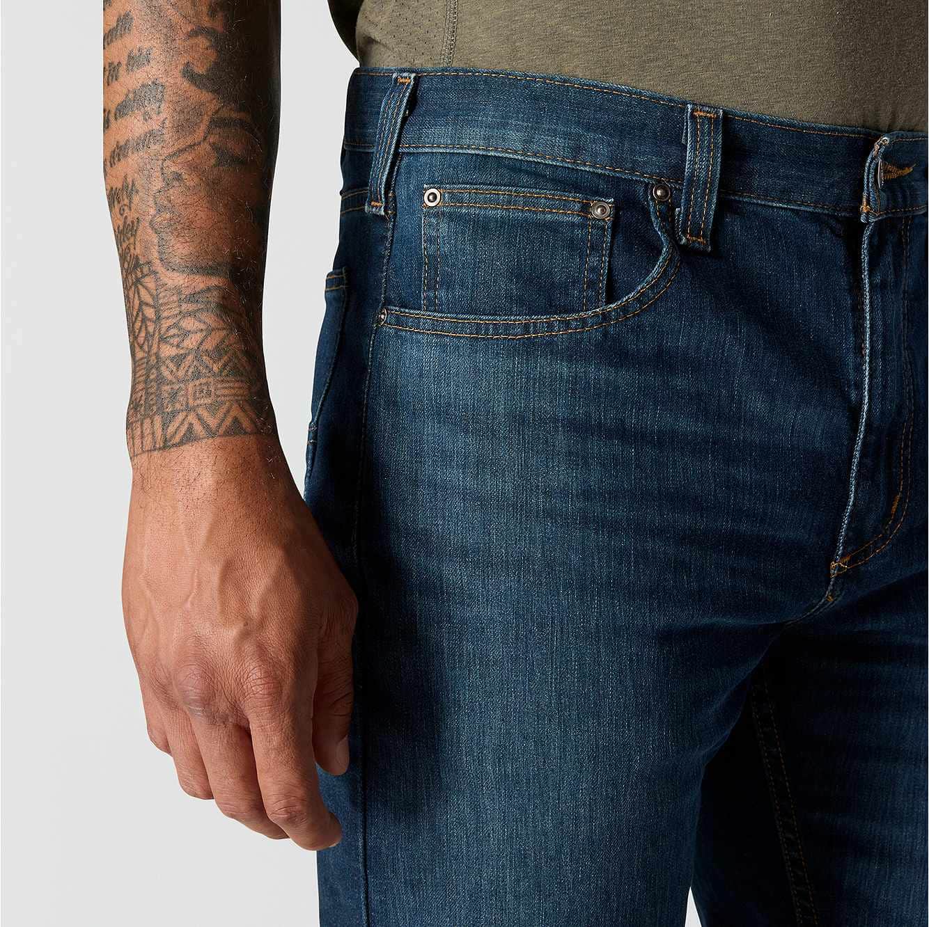These men's jeans can stand up to almost anything. They're made of our most durable, abrasion-resistant denim with enough stretch for easy movement. The relaxed fit provides extra room through the seat and thigh with cuffs that fit over most work boots.