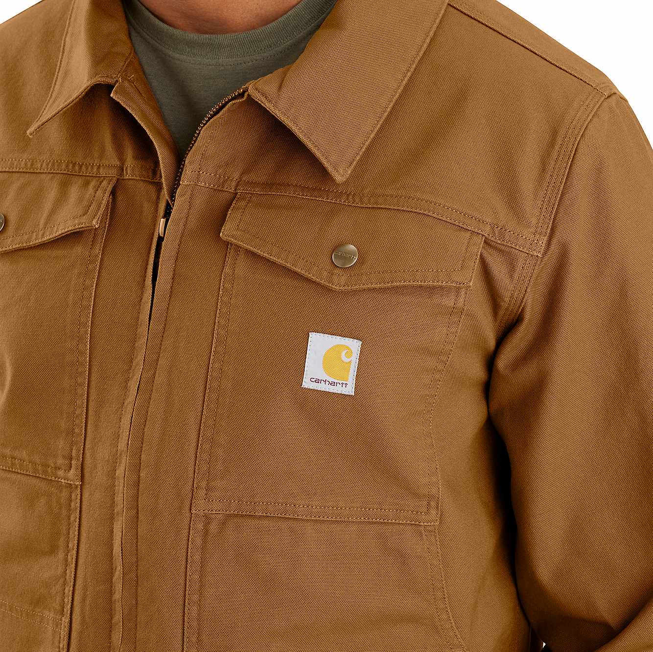 When its cool in the warehouse or cool on the farm, this men's Carhartt relaxed-fit jacket has you covered. It's rugged but not rigid, with durable canvas duck and built-in flex that lets you move freely. Interior and exterior pockets keep essentials close, while a snap-adjustable hem lets you customize the fit.