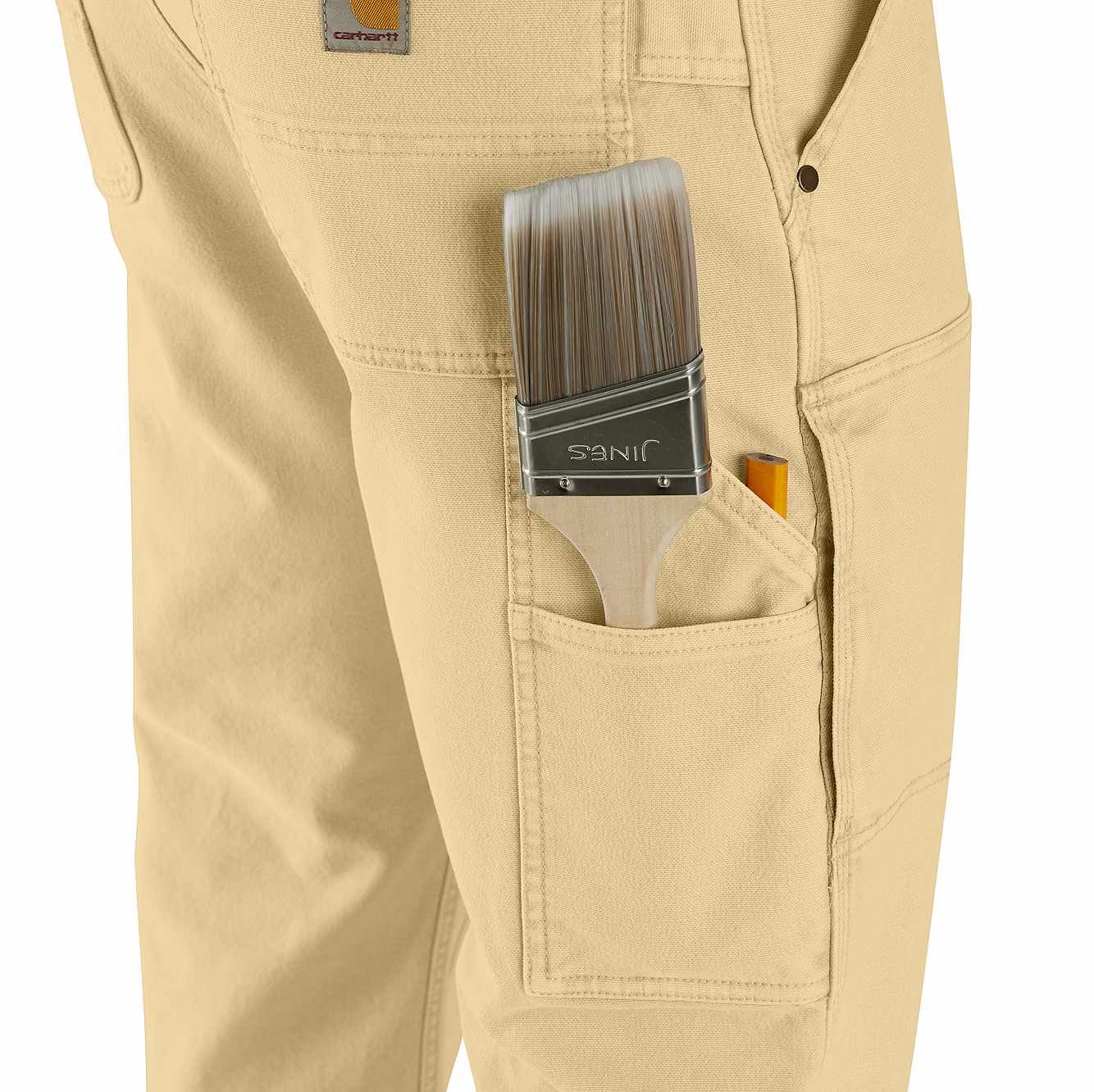 An updated version of our iconic B01, these men's double-front utility pants let you move without restriction. They're made from durable duck with built-in flex and garment-washed for a unique look. The double-layer front leg panel adds durability and accommodates knee pads. Multiple pockets and a utility loop keep essential tools close at hand.