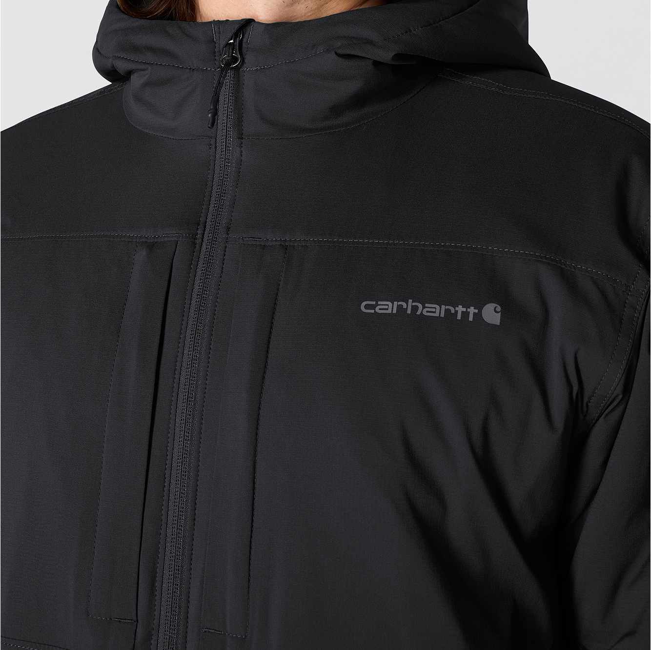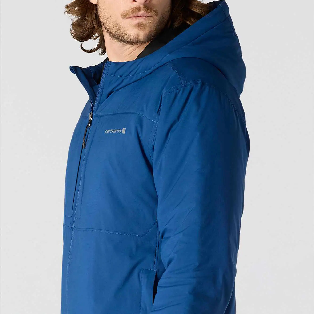 This men's lightweight insulated jacket supports active days on the job or farm. Carhartt Rugged Flex® means it's built to bend, twist, and lift without restriction. Wind Fighter® blocks windy conditions, and midweight insulation adds warmth for cold days. The relaxed fit adds a little extra room to move.