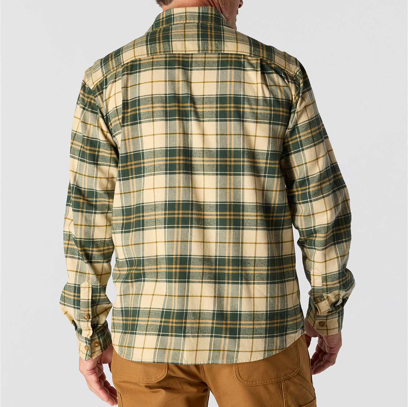 Made to be worn tucked or untucked, this men's plaid flannel shirt jacket features a midweight cotton blend with just the right amount of stretch for an unrestricted range of motion. A relaxed fit allows for easy layering and a natural range of motion.