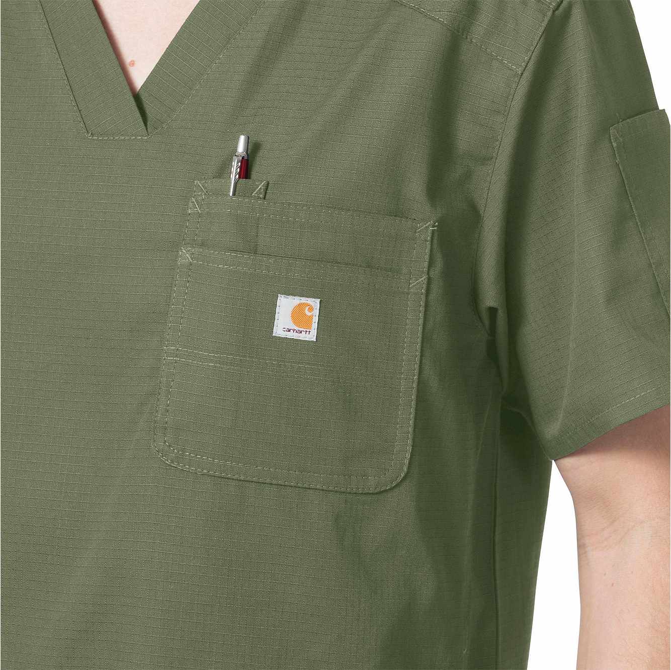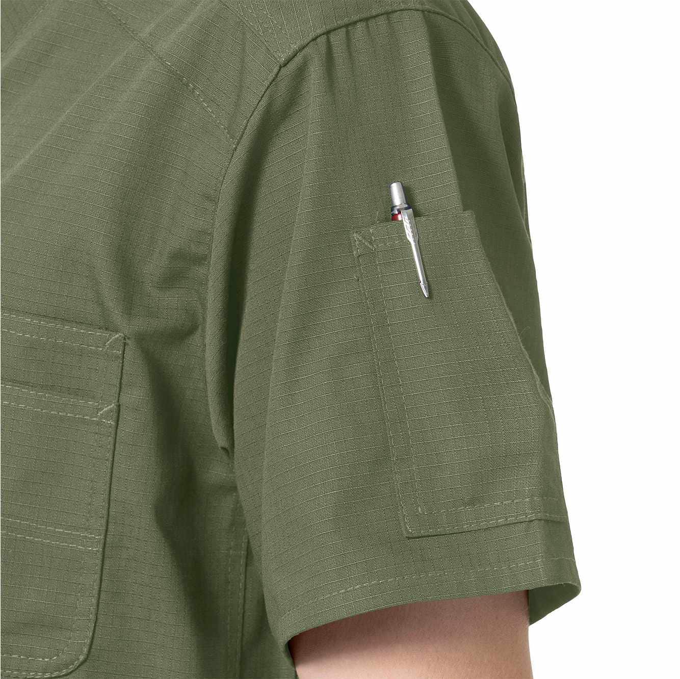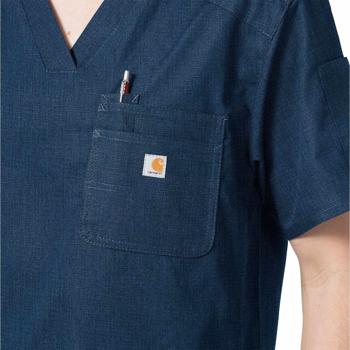 Stay organized throughout your shift in this men's scrub top. A chest pocket complements two front patch pockets to keep everything from your pen to your phone within easy reach. The ripstop cotton-blend build features a back pleat and a split hem for a full range of mobility for reaching, lifting, and bending on the job.
