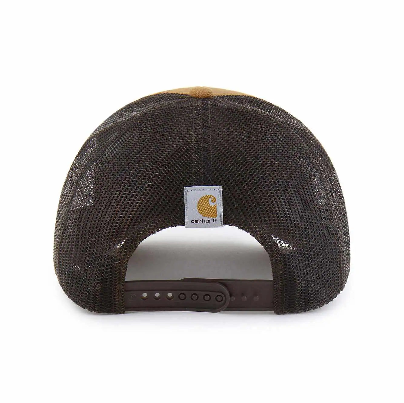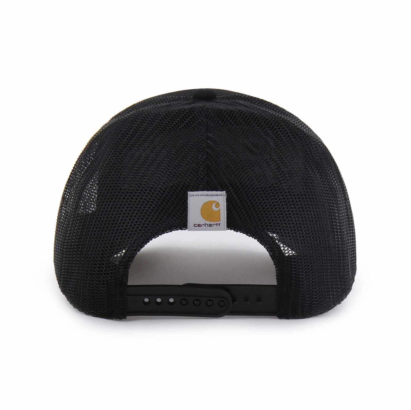 The Carhartt '47 TRUCKER has a comfortable mid-crown, a curved visor, and an adjustable plastic snapback. The front has a raised embroidery logo. Made from Carhartt Duck Cloth unwashed material and mesh.
