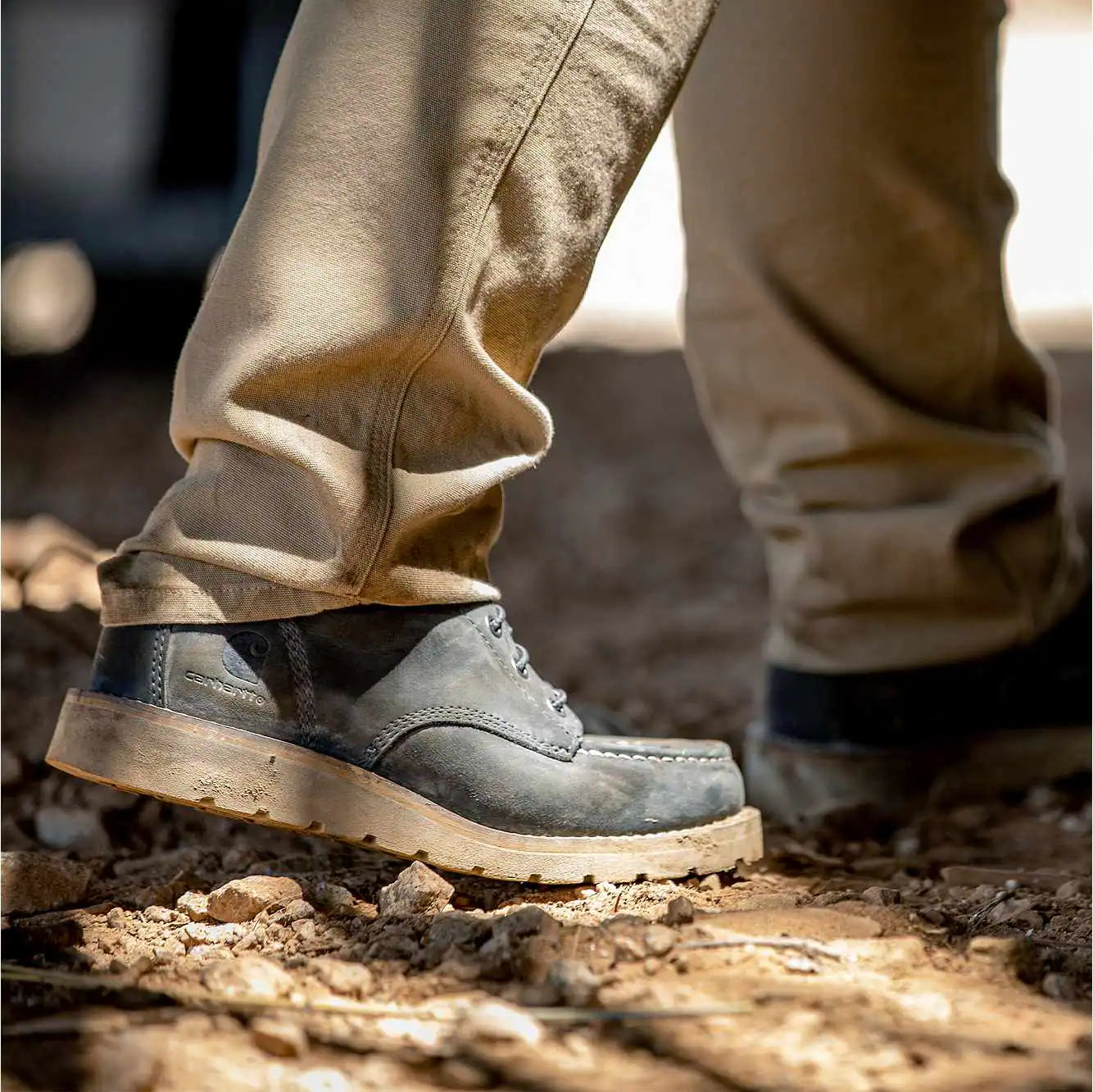 Wedge style boots continue to prove that quality craftsmanship can't be beat. This classic moc toe style is built with premium rugged leather, a dual density rubber outsole that provides full ground contact traction and PU Cushion insoles. This boot is a perfect fit for function and versatility.