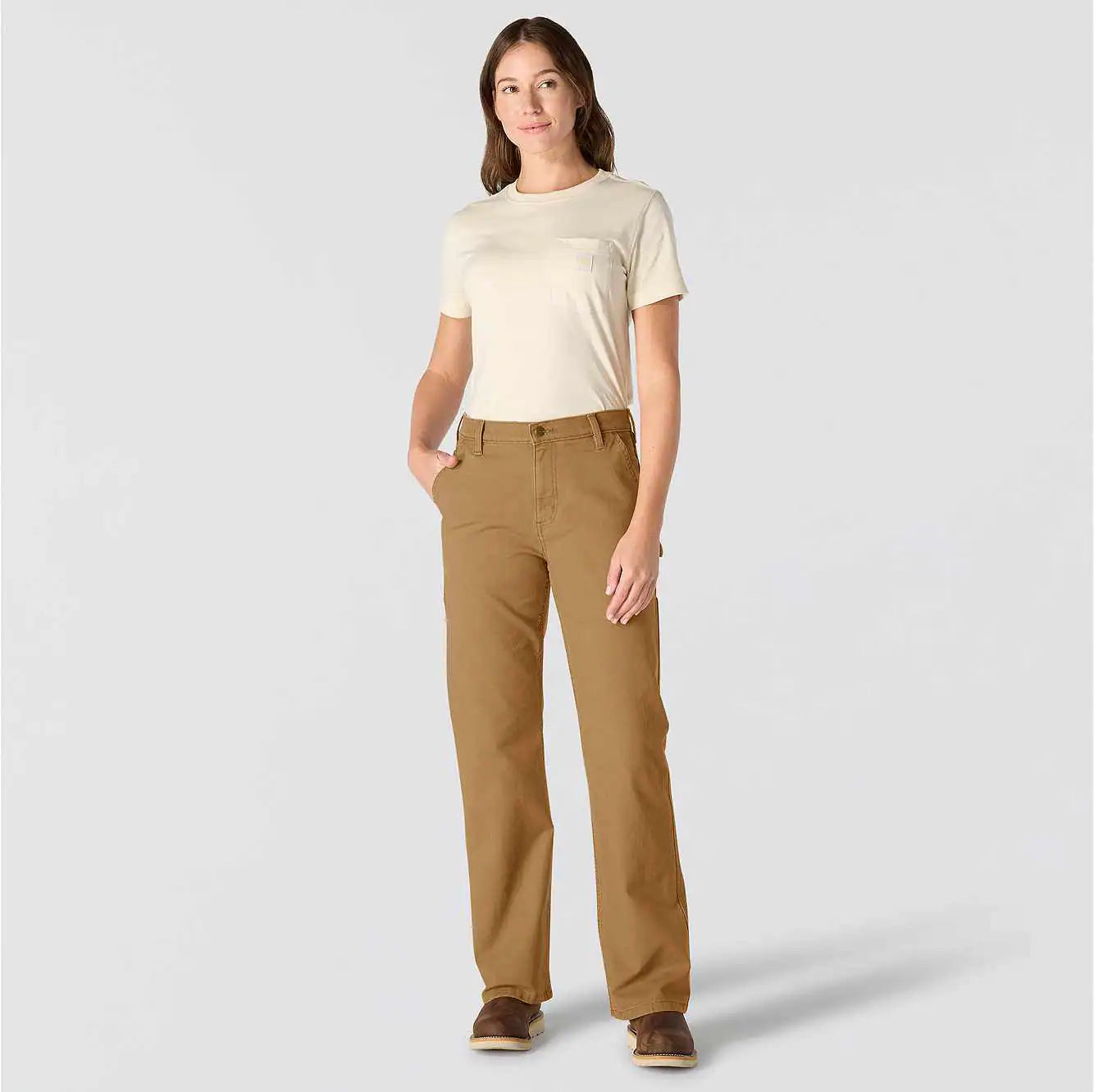 Durable and comfortable, these loose fit pants for women feature Carhartt's durable canvas material with built-in flex for unrestricted movement. Multiple tool pockets and a utility loop keep small tools close at hand. Their loose fit offers a generous cut in the seat and thigh with a loose leg opening.