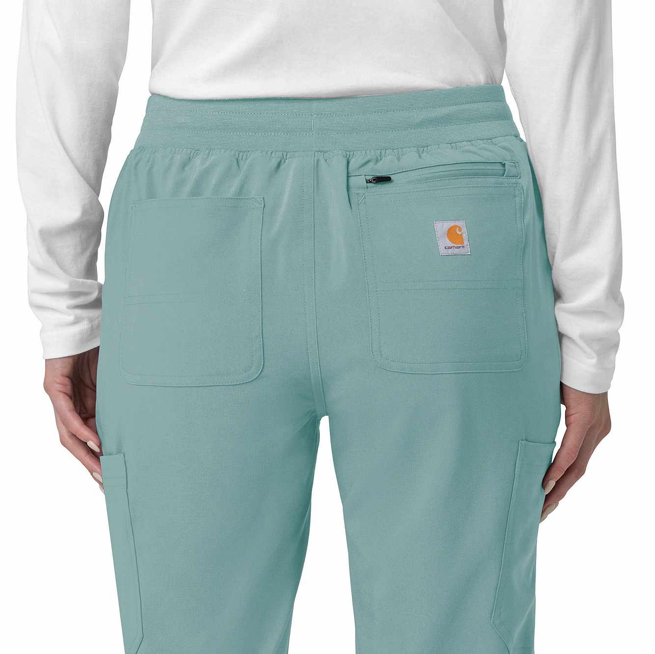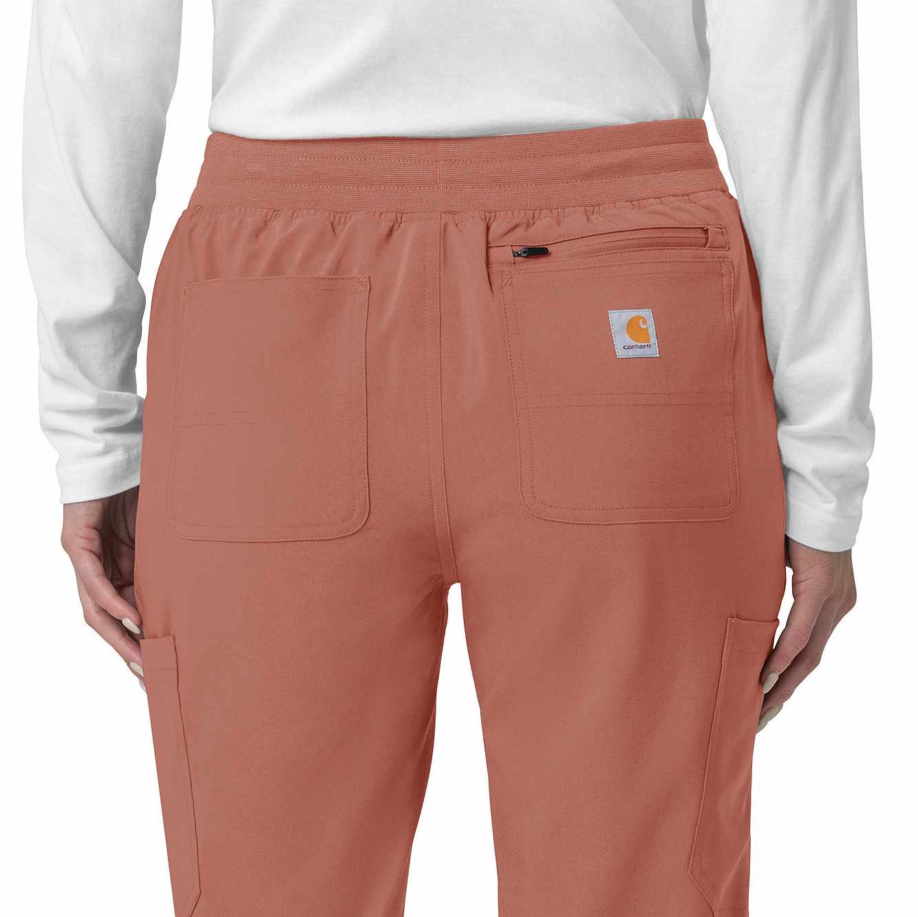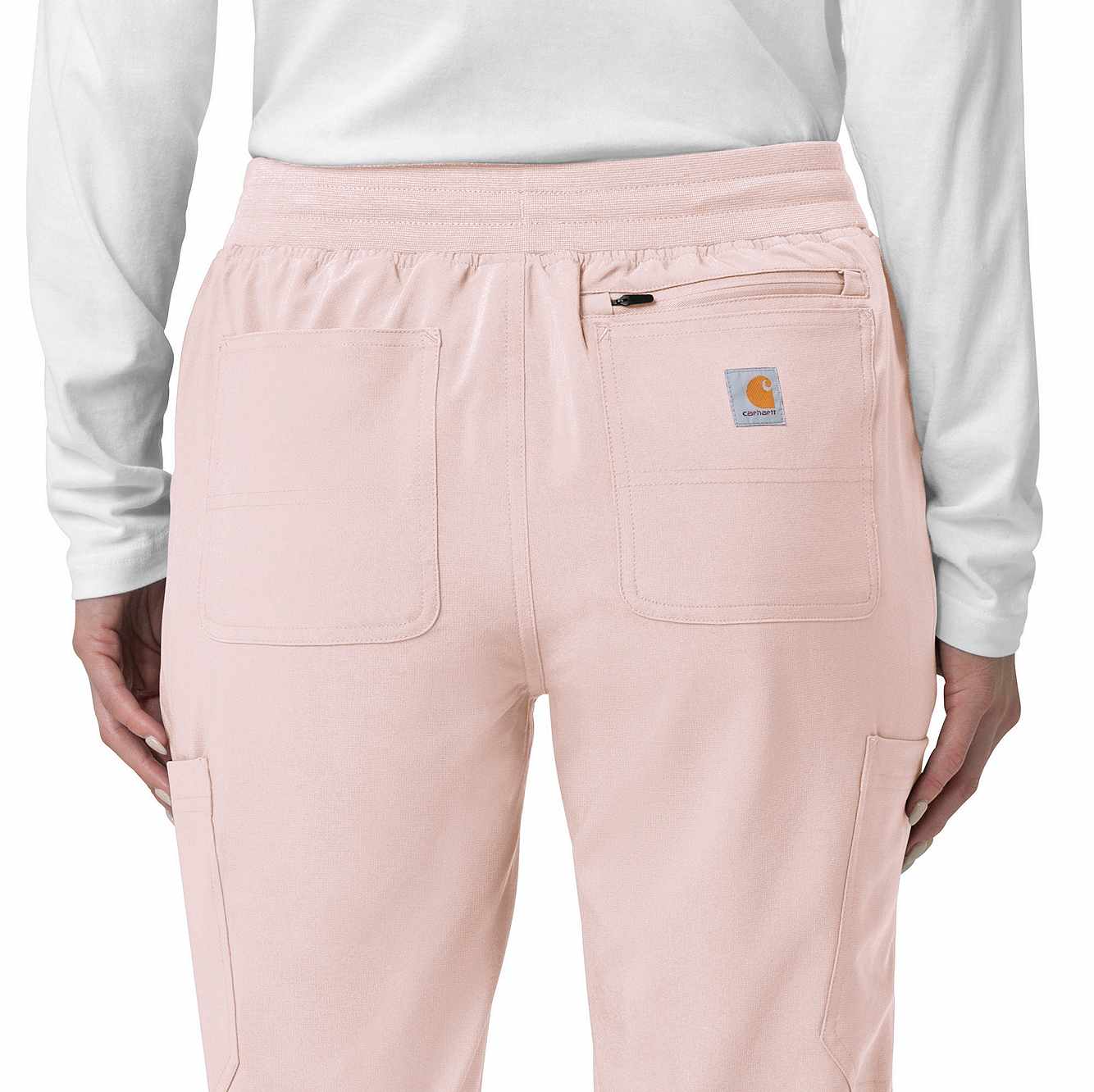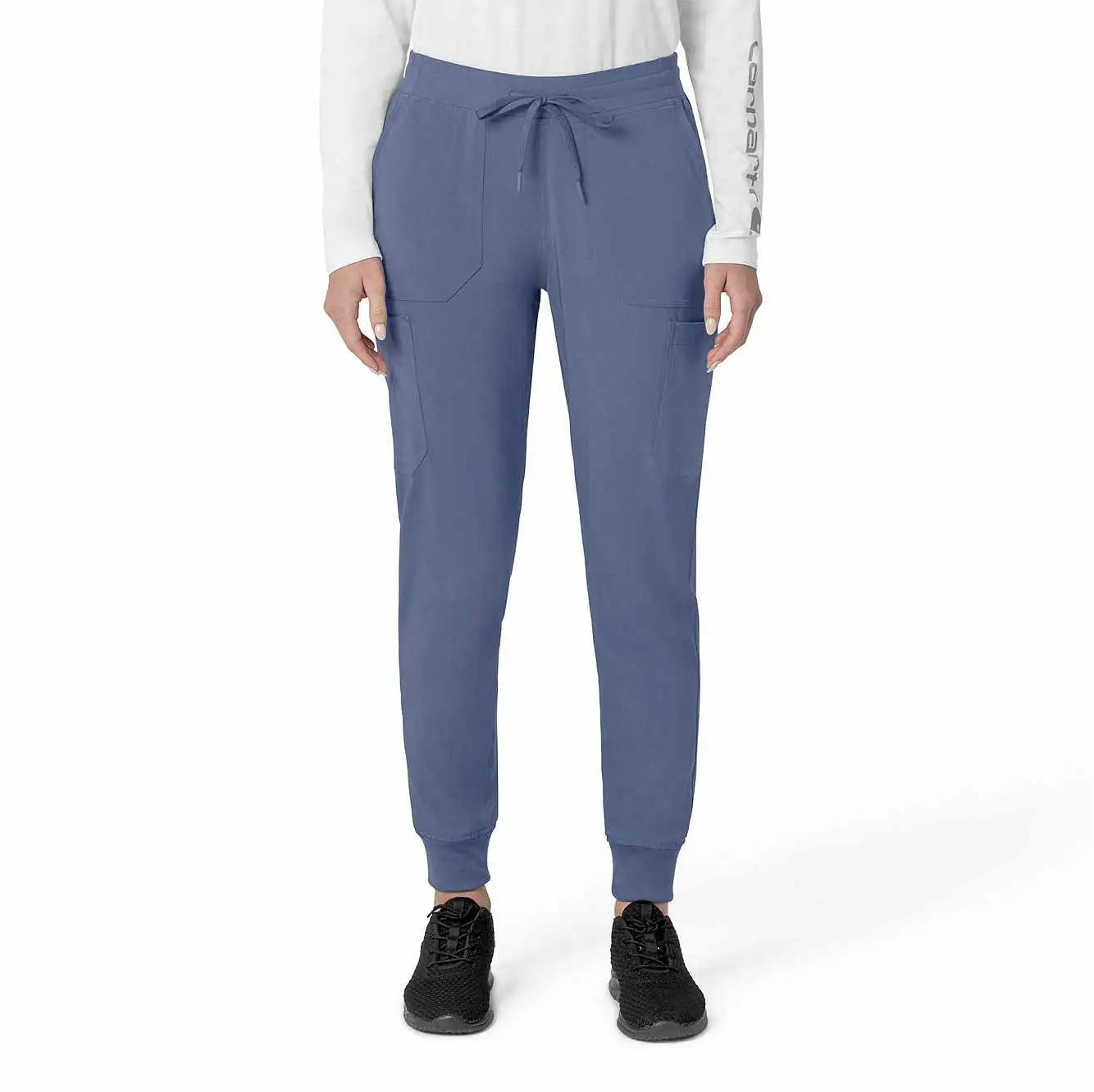 The Carhartt Women's Cargo Jogger Scrub Pant – your dependable partner for demanding days in the medical field. Crafted from a durable and comfortable polyester spandex blend, these pants offer the flexibility you need to handle any task with ease. Whether you're pushing carts, adjusting equipment, or attending to patients, the built-in flex ensures you move freely and comfortably. The rib-knit comfort waistband with elastic and a full drawstring ensures a secure, no-pinch fit that won't dig in during long shifts. These jogger-style scrub pants feature a rib-knit cuff at the bottom for a stylish and secure fit. Stay organized with multiple pockets, including deep front slash pockets, cargo pockets with pen and cell phone slots, Carhartt-style back pockets, and a secure zip pocket with a mesh pocket bag. Your essentials are always within reach. With FastDry® technology to keep you cool and dry and Rugged Flex™ stretch technology for unrestricted movement, these scrubs from the Force Cross-Flex collection are designed to help you excel on every shift. Trust Carhartt for the durability and comfort you need in your medical uniform.