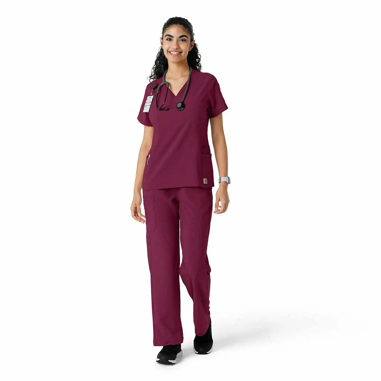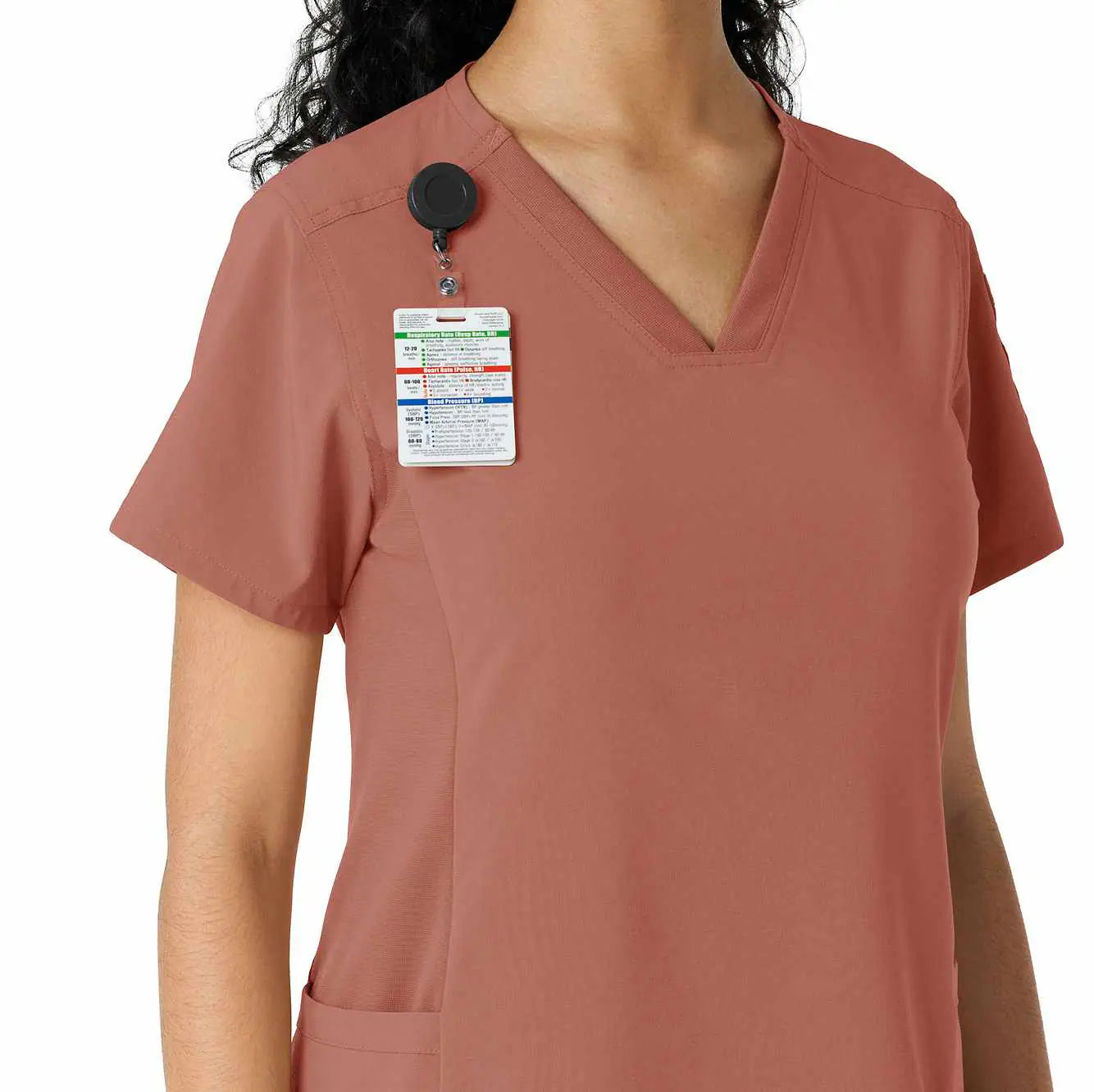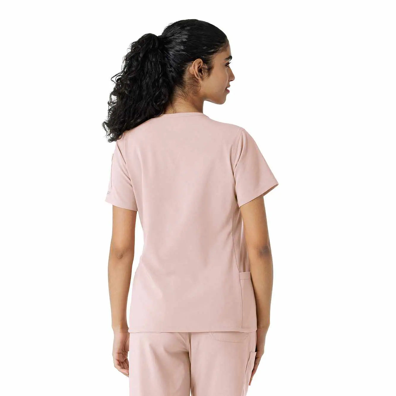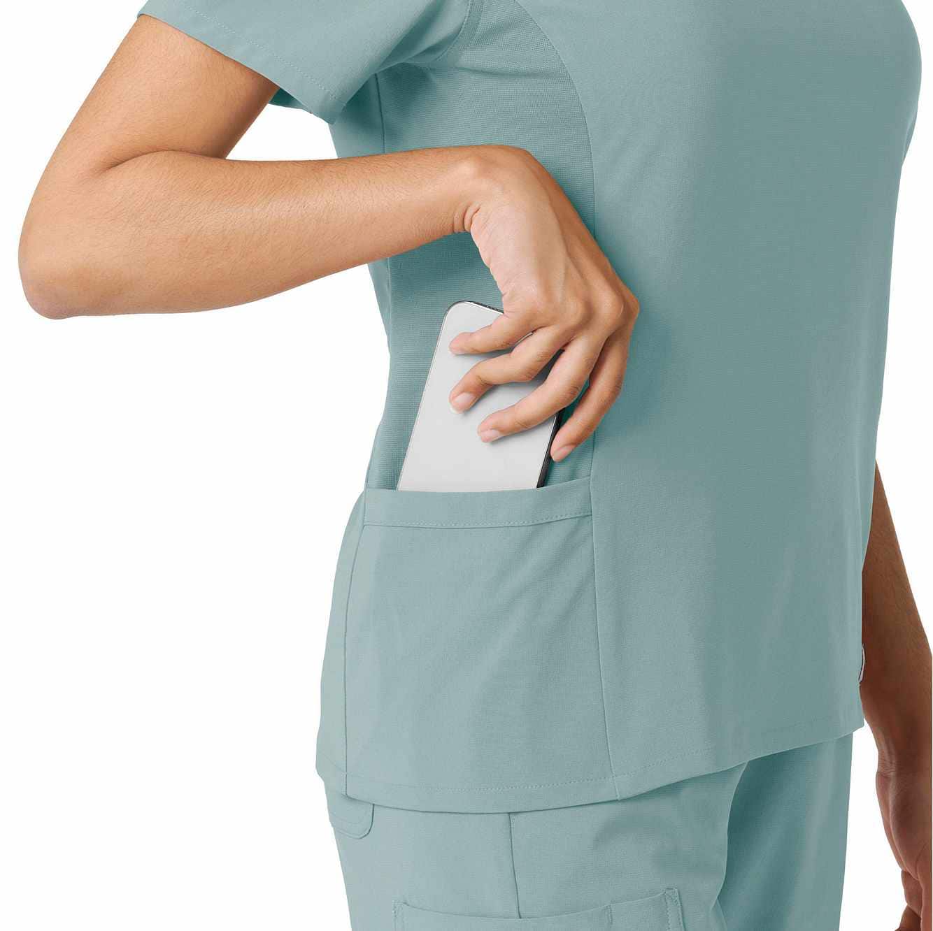 Meet your new favorite scrub top for intense shifts! The Carhartt Force Cross-Flex Women's Knit Panel Scrub Top is designed to move with you, thanks to soft, stretchy fabric that feels more like athletic gear but with a polished, professional vibe. The rib-knit inserts on the sides provide added flexibility, so you stay comfortable no matter the task. With a handy shoulder badge loop and secure zip pocket on the left hip, plus top-loading pockets for essentials, it’s as functional as it is flattering.