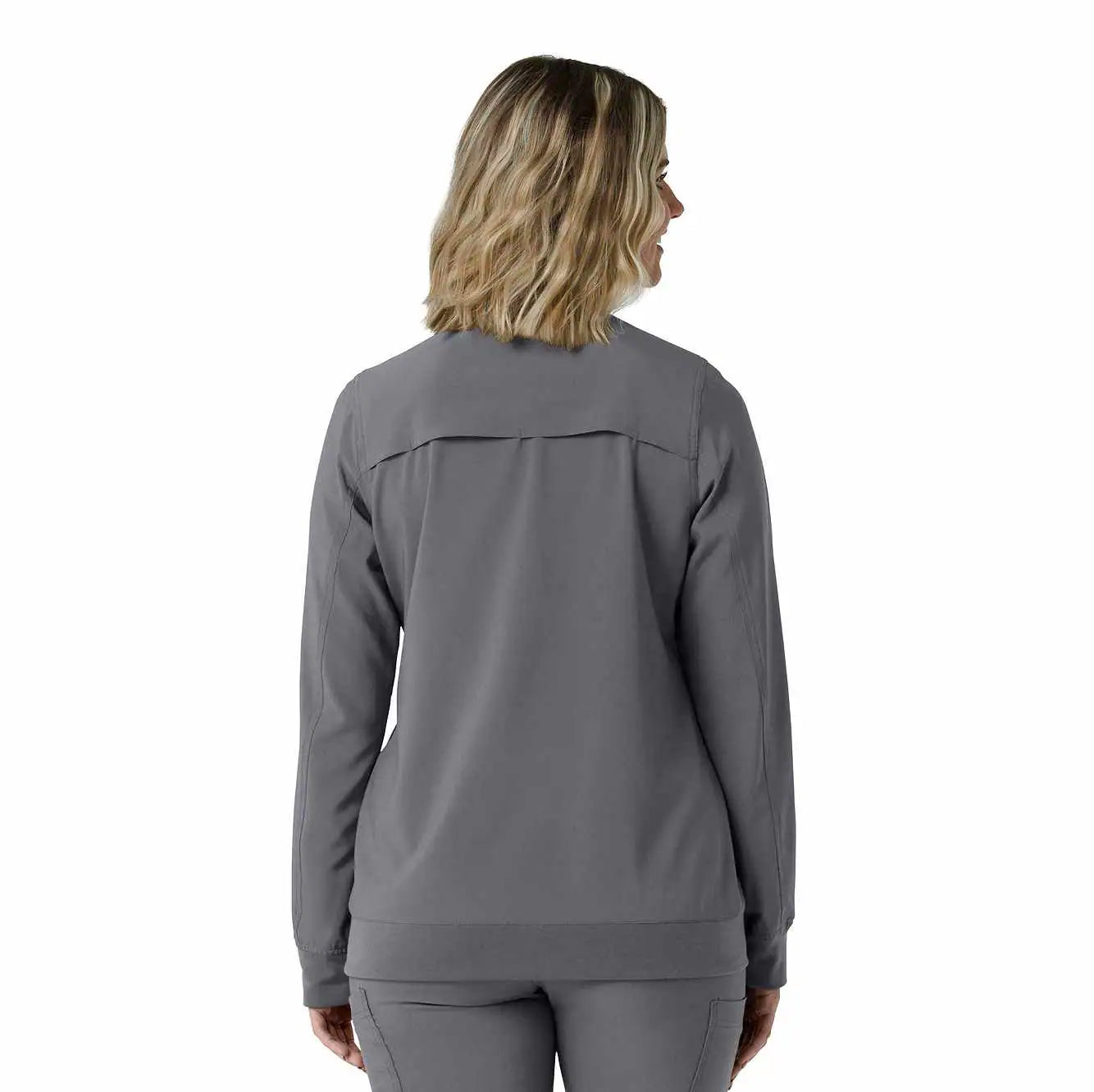 This women's Carhartt scrub jacket is a unique blend of classic workwear style and healthcare-specific functionality. At first glance, it resembles a traditional work jacket, but it's engineered to meet the unique demands of medical professionals. The Rugged Flex™ stretch fabric provides exceptional flexibility, allowing for unrestricted movement during busy shifts and demanding tasks. Functionality is a key focus, with a multitude of pockets strategically placed to keep essential tools and personal items organized and accessible. Notably, a dedicated stethoscope pocket ensures this crucial instrument is always within reach. The mesh-lined back vent promotes airflow, keeping you cool and comfortable even during long and strenuous periods. This jacket is designed to provide both durability and comfort. The robust construction ensures it can withstand the rigors of daily wear, while the thoughtful design details, such as the stretch fabric and ventilation, enhance overall comfort and performance. It's a reliable and practical choice for any healthcare professional seeking a durable and functional scrub jacket that can keep up with their demanding work environment.