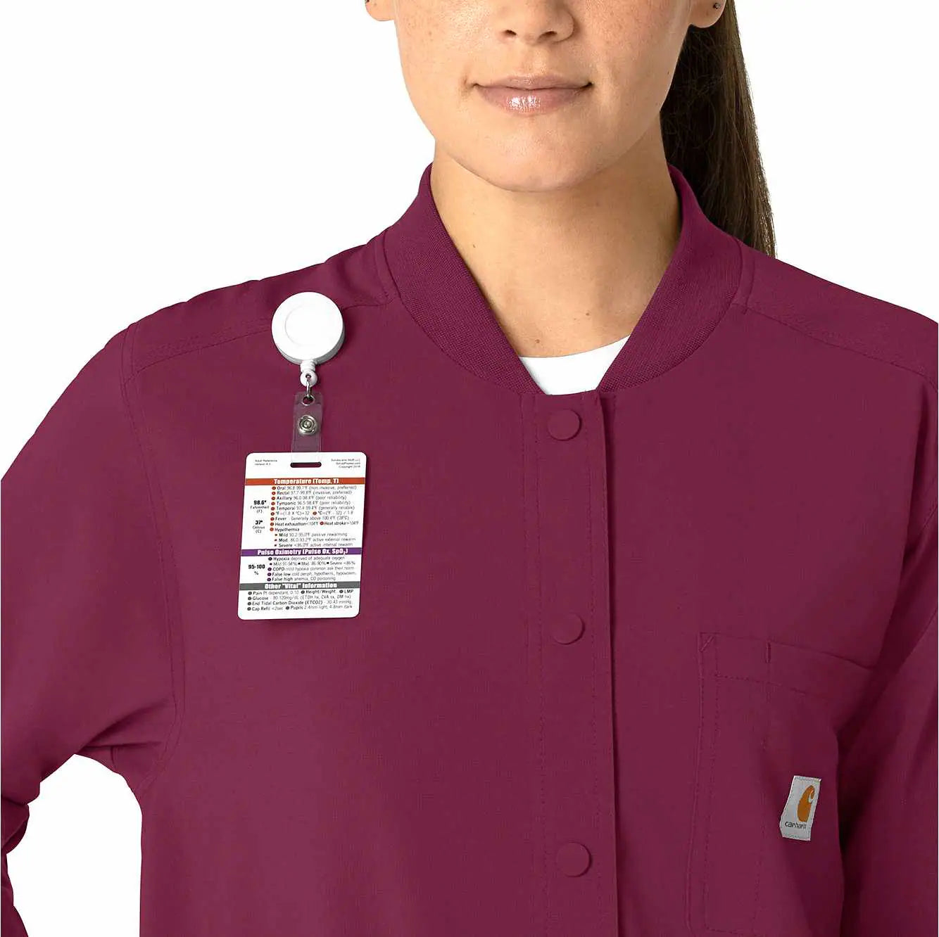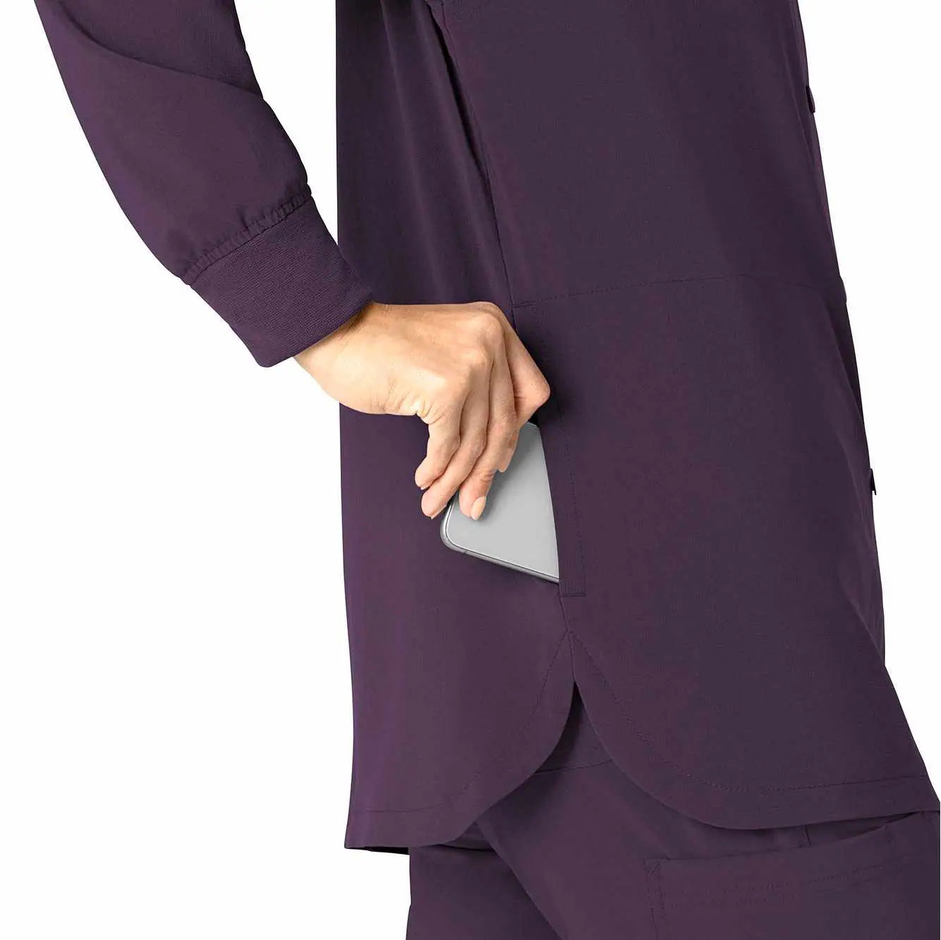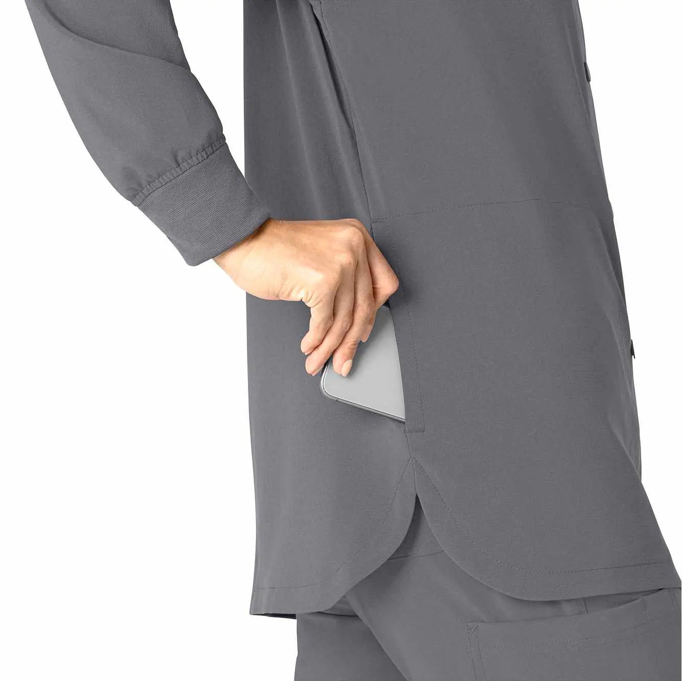 Versatility is the name of your game. You're always ready to switch gears, whether it's completing your own tasks or helping your fellow nurses with theirs. This women's shirt jacket does the same, blending the polished style of a shirt with the coverage of a jacket. It's the perfect layer for days when temperatures fluctuate or the air conditioning varies from room to room. Built for durability, it's made with a stretchy, comfortable fabric that includes micro ripstop to handle the rigors of your daily life at work. A knit collar and snap-button front accent the design for a cozy touch that adds just the right amount of tailoring. Keep everything where you need it with a chest pocket built with a pen slot plus internal loops for your badge or glasses. The lower front pockets are oversized, and there's even a pocket just for your phone for fumble-free access. This shirt jacket is part of our Force Cross-Flex collection, designed to help you excel on every shift. It wicks sweat and dries fast, and it's built to move with Rugged Flex™ stretch technology.