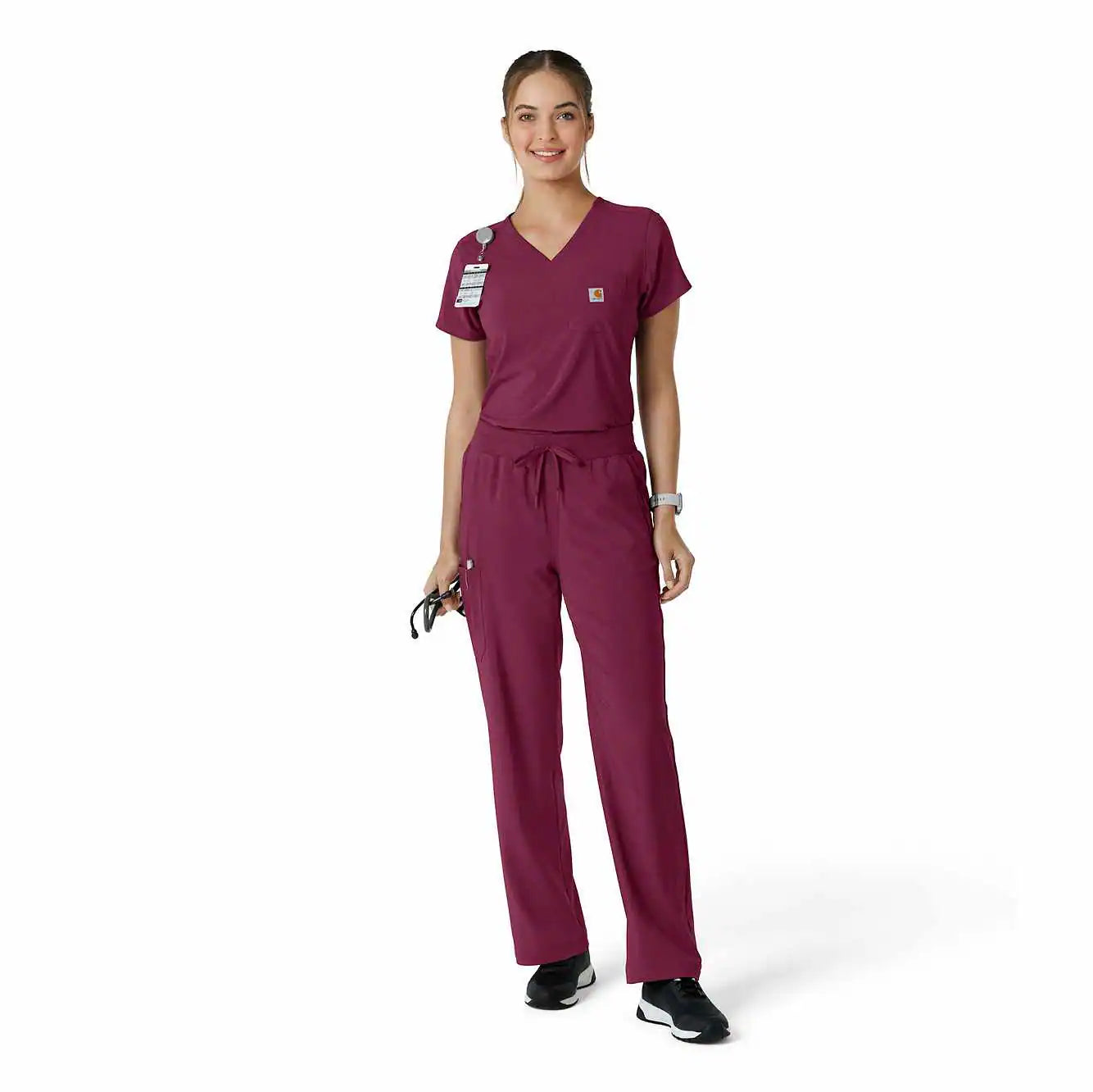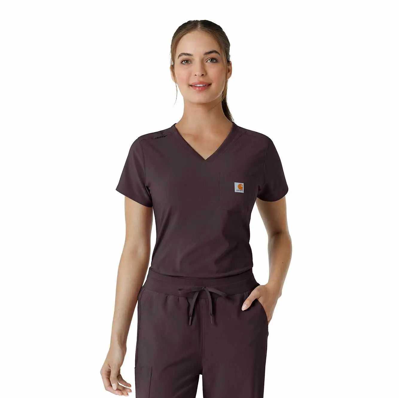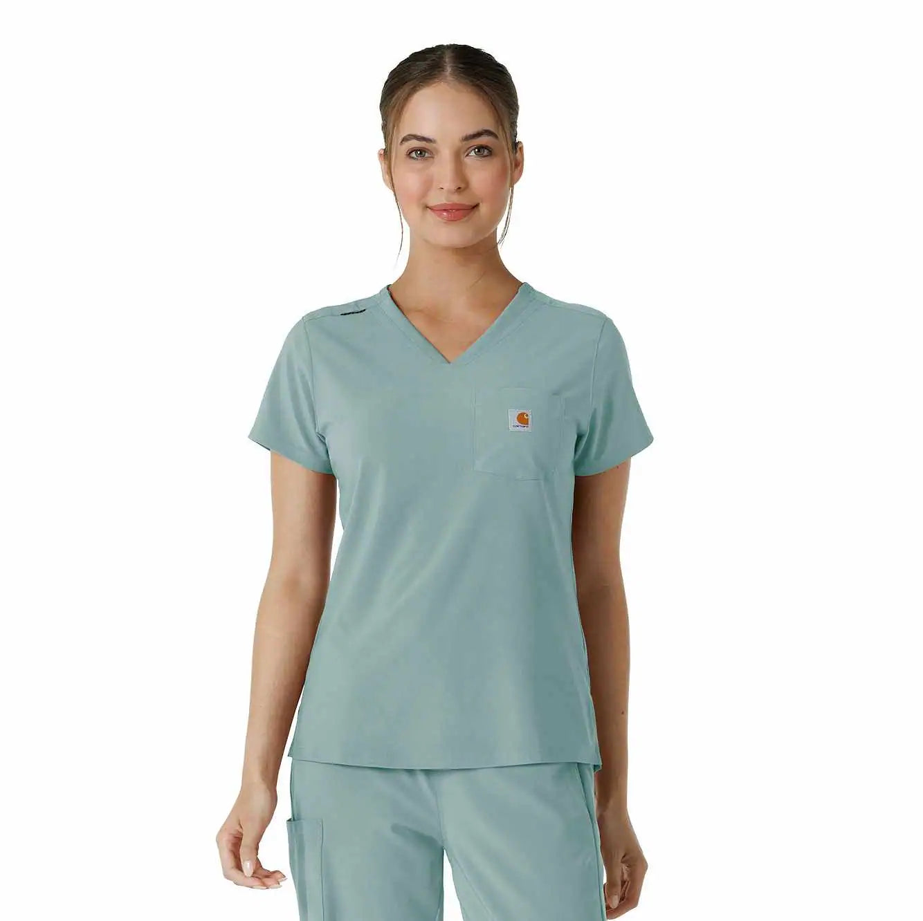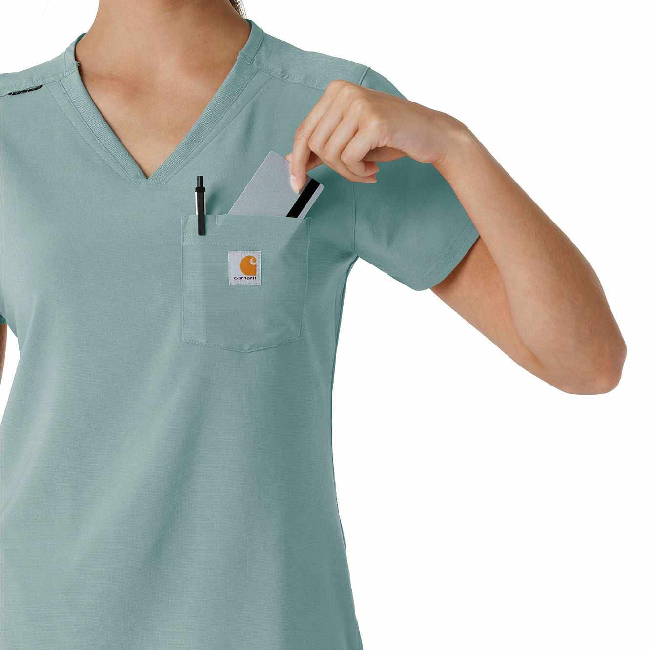 Stay comfortable and professional all shift long with this Women's Carhartt Tuck-In Scrub Top. Made from ultra-soft, stretchy fabric, it moves with you, making bending, reaching, and twisting effortless. Tuck it into your scrub pants for a sleek look or leave it untucked for a more relaxed fit—either way, you're ready to take on the day with style and ease.