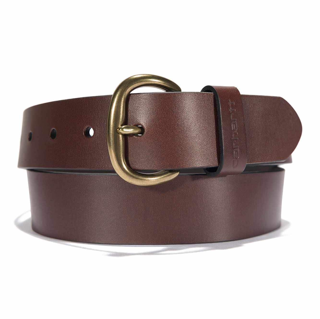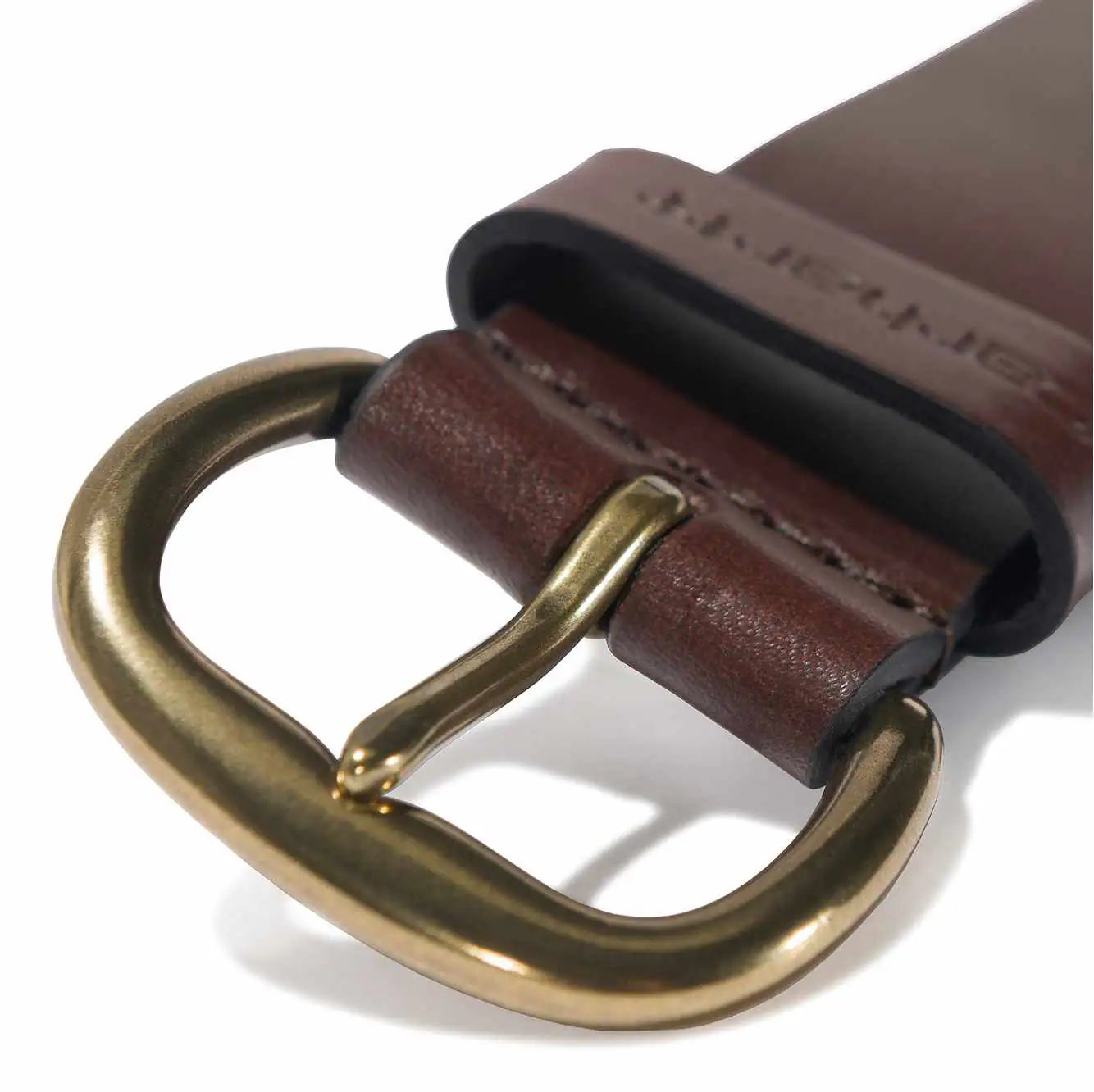 From job site to backyard barbecue, this belt stands up to hard wearing. This women's belt is made of waxed full-grain leather that's stiff and durable. The Carhartt logo is engraved on the leather ke