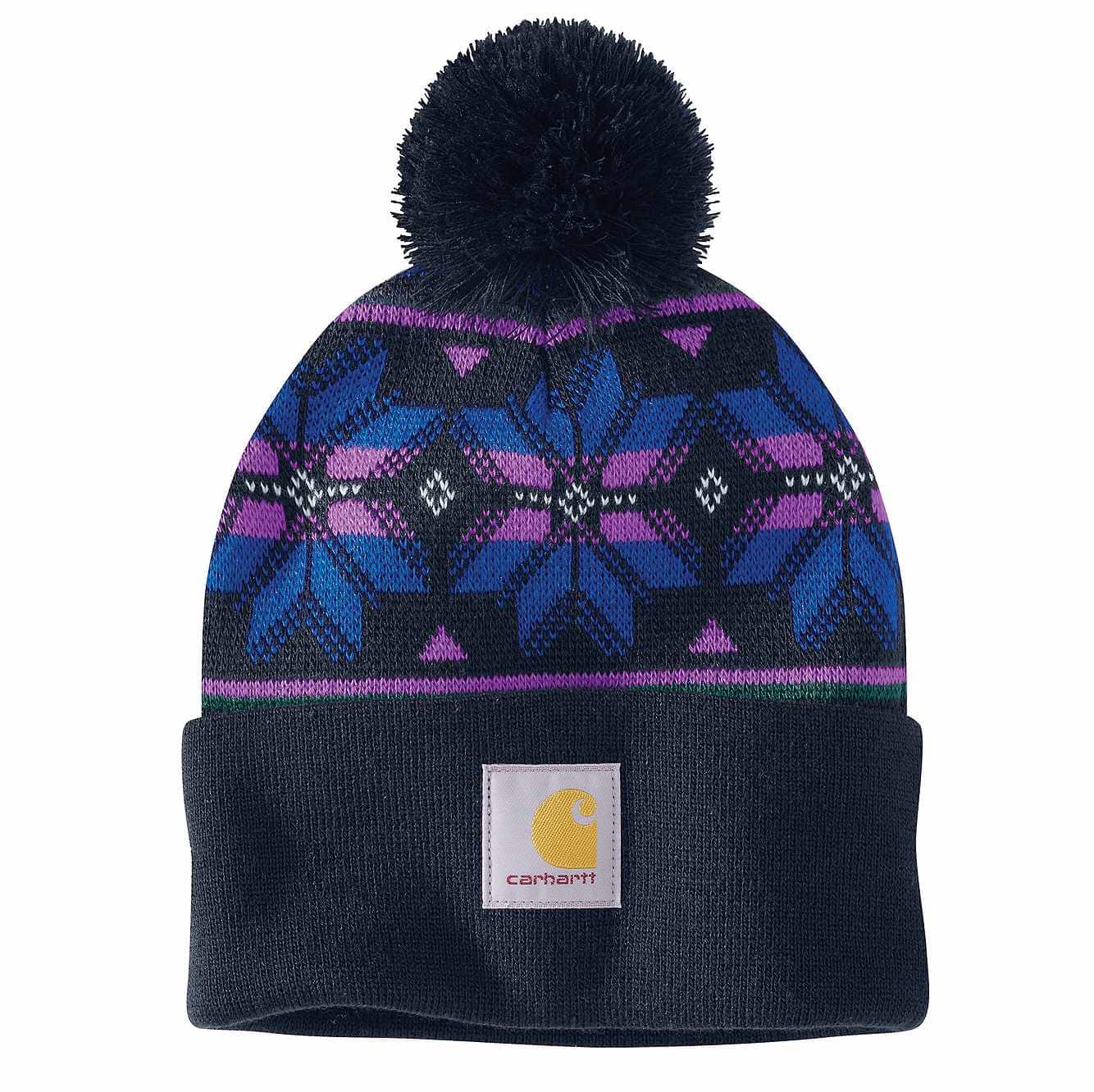 A cold-weather classic, this women's pom-pom beanie is made in acrylic jacquard. The soft build stretches to fit your head, with a stylized snowflake pattern that goes with any winter uniform.