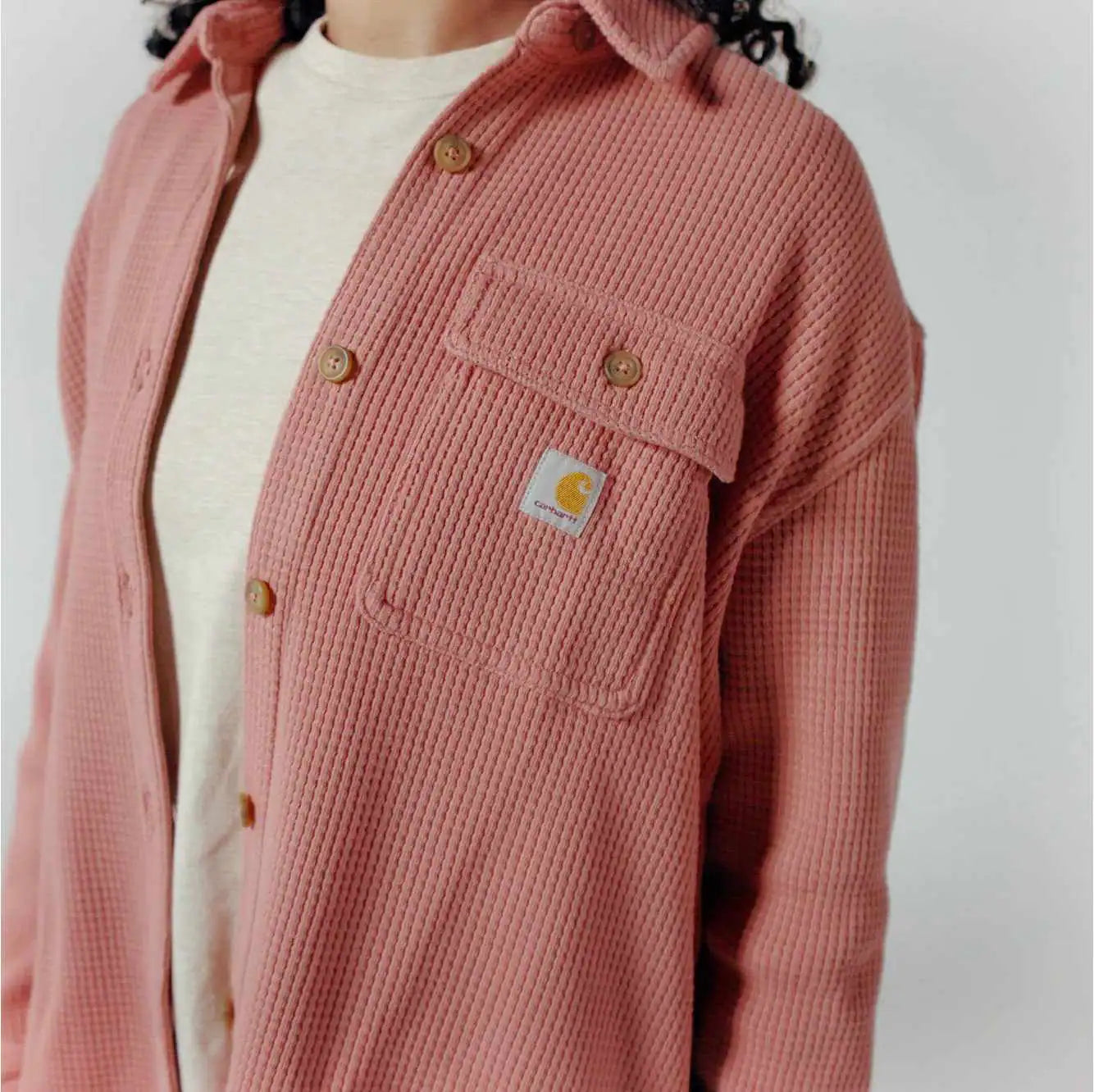 Made with an oversized fit for layering on cold days, this women's waffle knit shirt balances warmth and breathability. The heavyweight cotton blend has a soft feel and everyday durability.