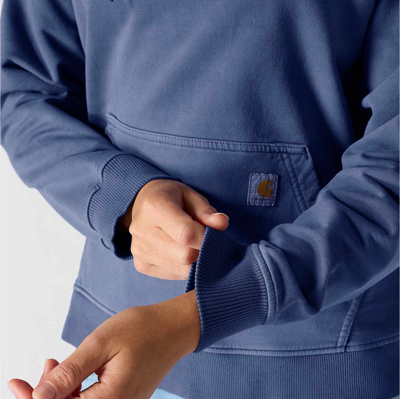 - Carhartt label on front pocket