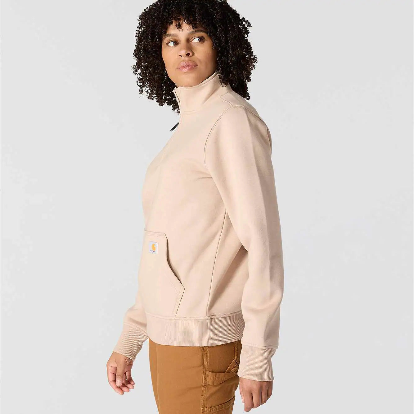From early morning chores to late-night shifts, fight the chill in this women's quarter-zip sweatshirt. A midweight cotton blend offers everyday versatility, while a rib-knit waist and cuffs keep cold air out. Front pockets provide a place to warm your hands.