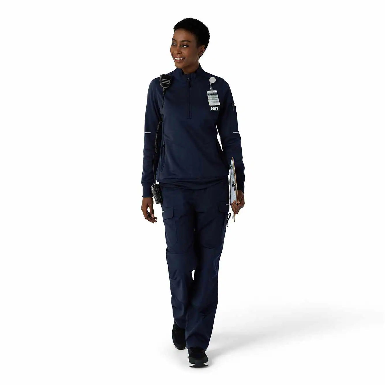 - Durable fabric at collar and shoulders with mic clips
