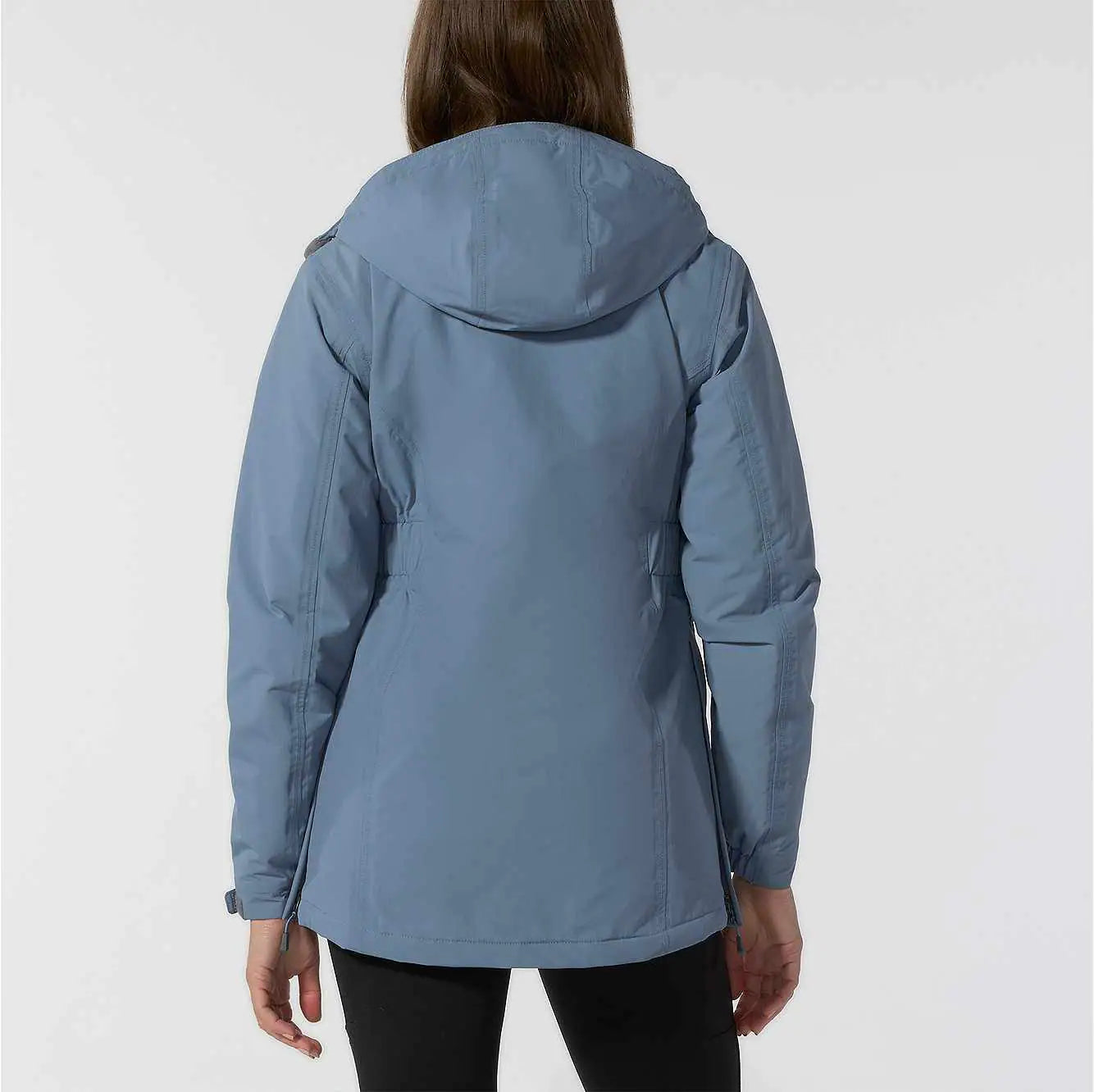 - Adjustable cuffs and droptail hem