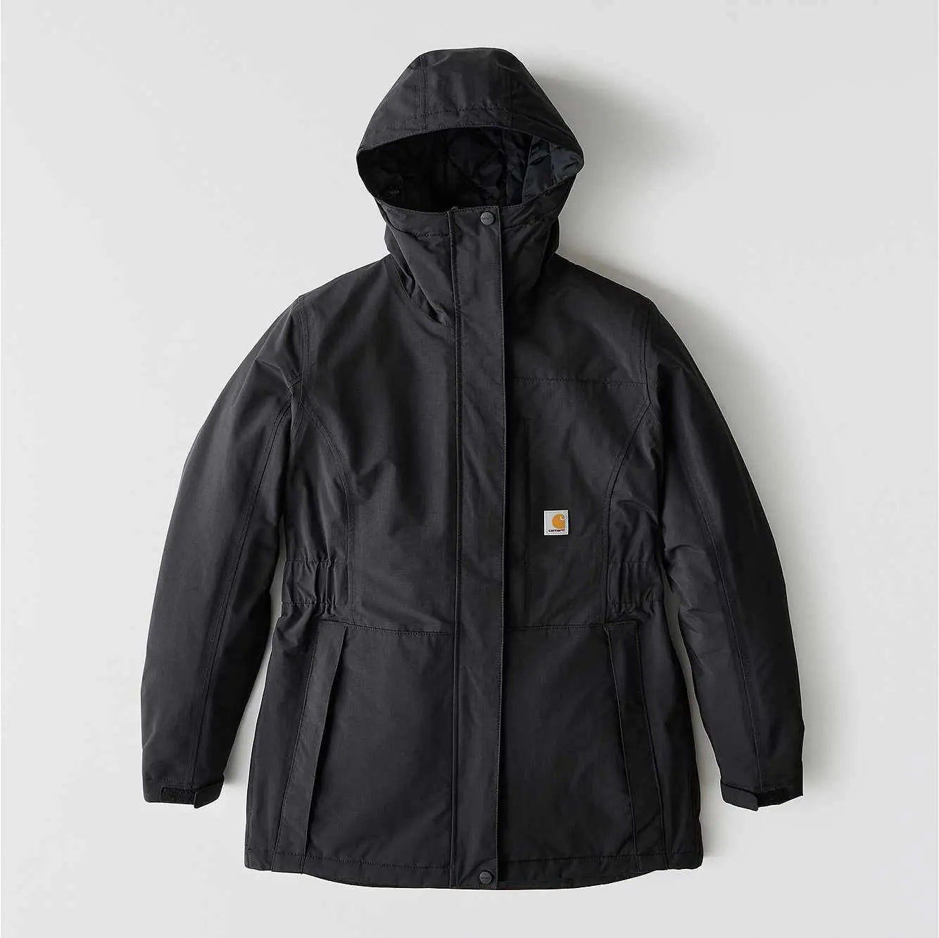 Carhartt durability meets all-weather coverage and insulation in this women's waterproof insulated jacket. A combination of a Storm Defender® waterproof, breathable protection and an insulated, wind-resistant build seals out cold, wet weather. Synthetic insulation throughout seals in heat without bulk. A relaxed fit includes a little extra room to move.